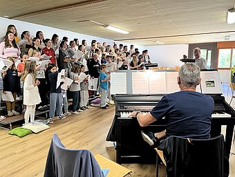 Kinder- und Jugendchor übt im Lager in Jaun FR