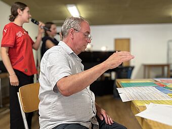 Unterstützt wird er von einem engagierten Team: Gesangscoaches, Musizierende, eine kreative Animationscrew – und nicht zuletzt eine Küchenmannschaft, die mit viel Herzblut für das leibliche Wohl sorgt. So sind alle bestens gerüstet für die intensiven Probentage.