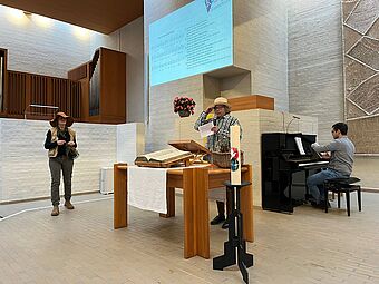 Nach einer Ankunftszeit im Kirchzentrum Weinbergli bei Kaffee und Zopf ging es in die Kirche. Hier hörten die rund 50 Kinder und Erwachsene den ersten Teil zum Thema "voll unfair". In einem kurzen gespielten Theater handelte die Geschichte von einem Weinbergbesitzer und zwei Arbeiterinnen. So stellte der Gutsbesitzer den ganzen Tag über Arbeiter:innen ein - und am Ende des Tages sollten alle den gleichen Lohn erhalten. Ist das fair?