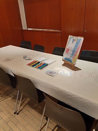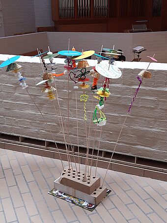 Nach der Geschichte konnte an verschiedenen Stationen das Thema "voll unfair" erfahren werden. So gab es zum Beispiel den "Münz-Sammel-Parcours", den "Wut rauslassen"-Posten, den "Vergebungsposten" und die "Unfairwand". Es wurden auch "Stressbälle" gebastelt und in der Kirche durfte der Posten "Musik tut gut" besucht werden.