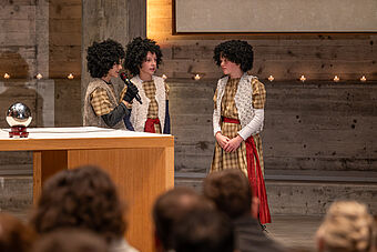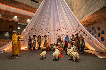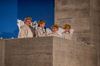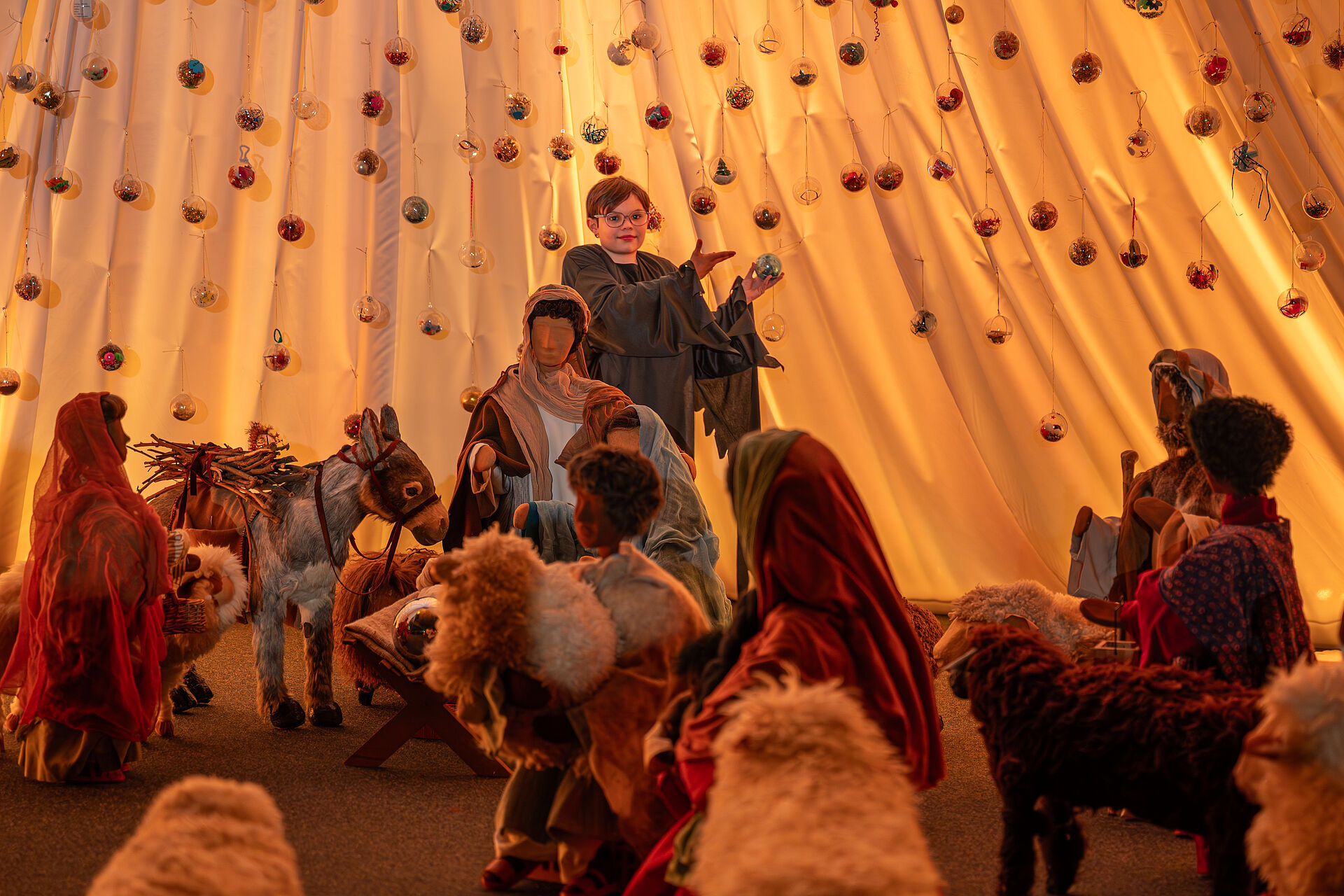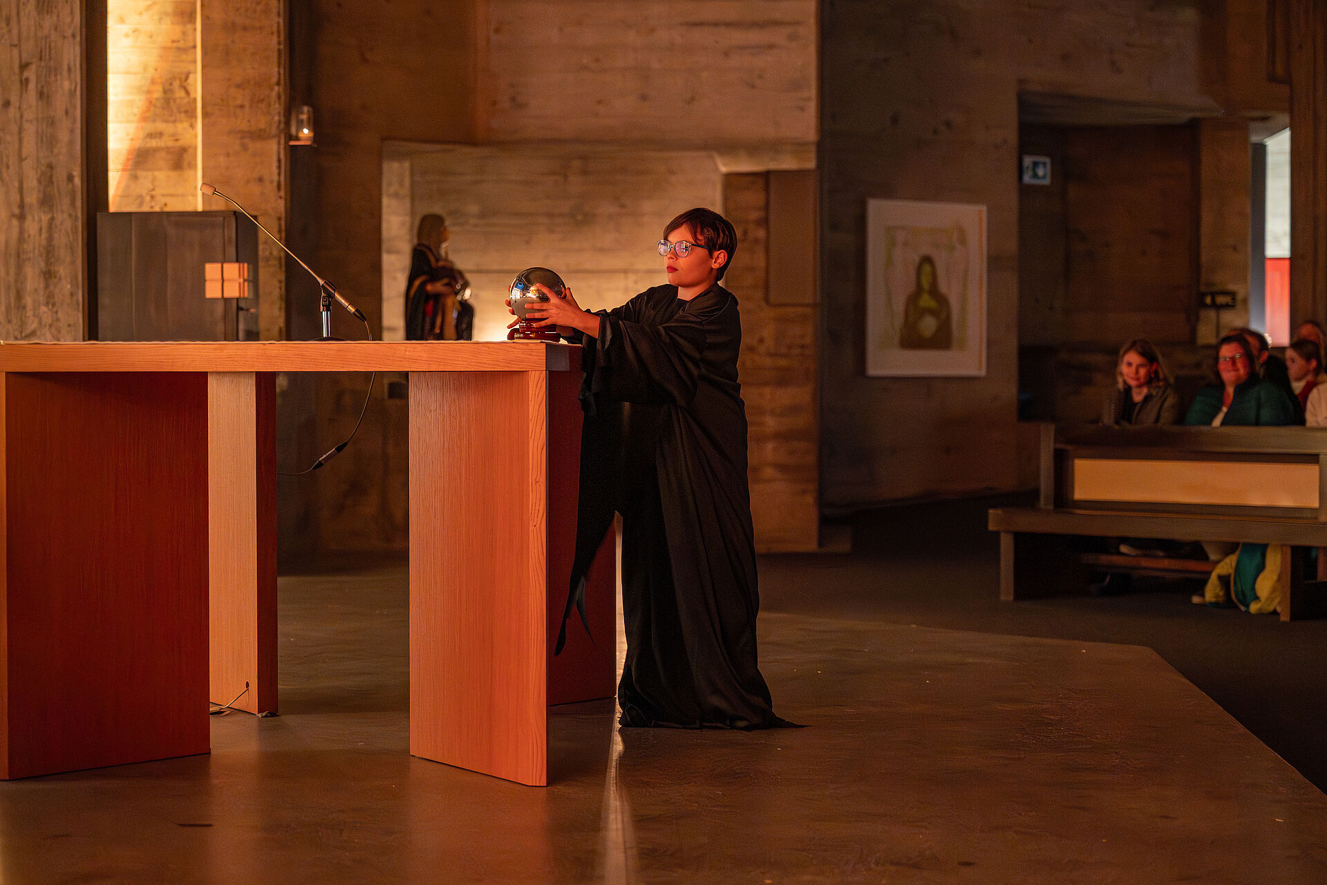 Das Kind mit der Glaskugel steht im dunkeln Kirchenraum. Es sieht Hoffnung. Ja, es gibt Hoffnung! Die Hirten erfahren von der wunderbaren Botschaft. Die Könige, ja sogar die Räuber machen sich hoffnungsvoll auf den Weg. Auf der Suche nach dem Retter der Welt. Dem Salvator Mundi, der Hoffnung und Frieden bringen soll.