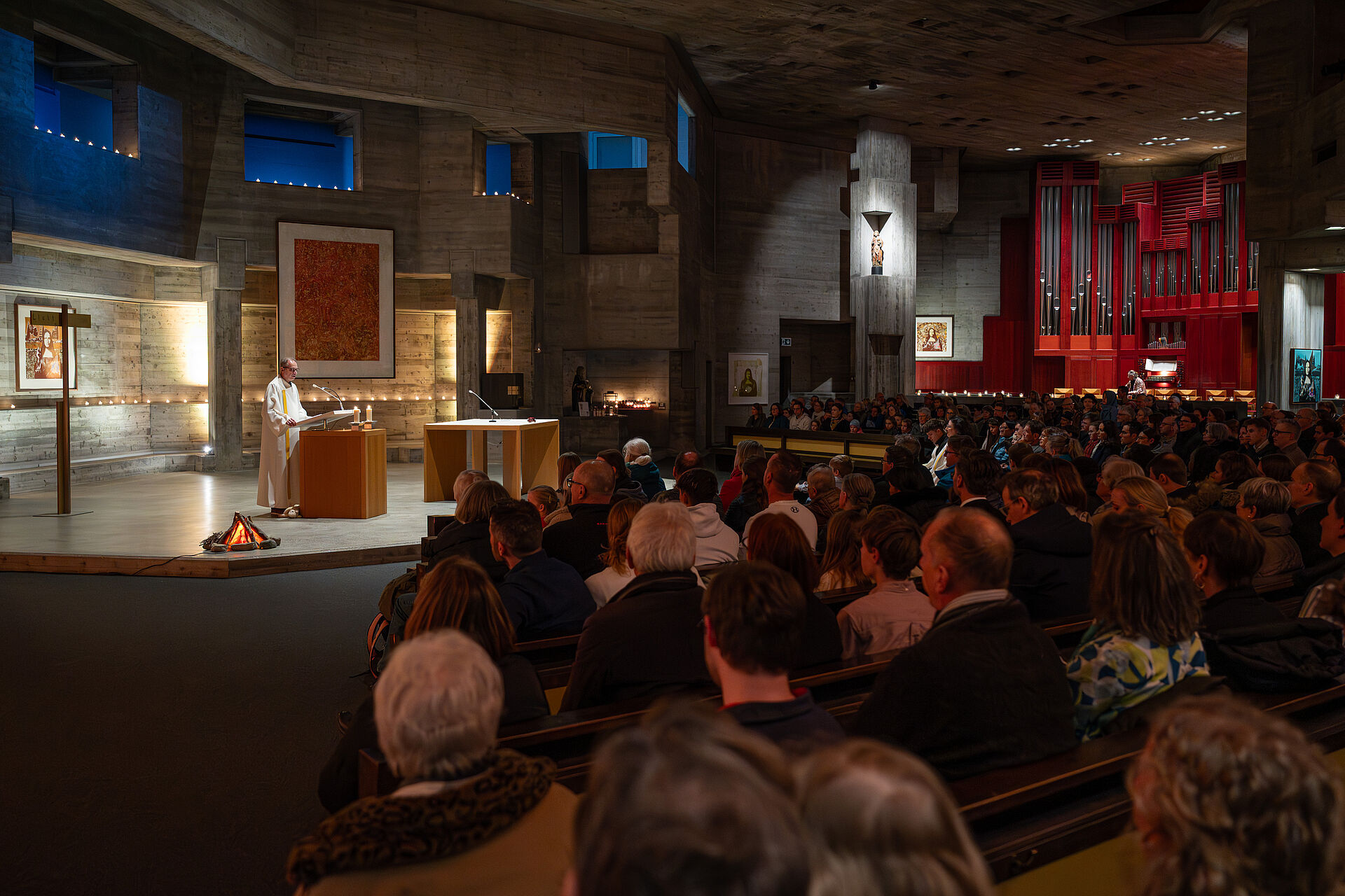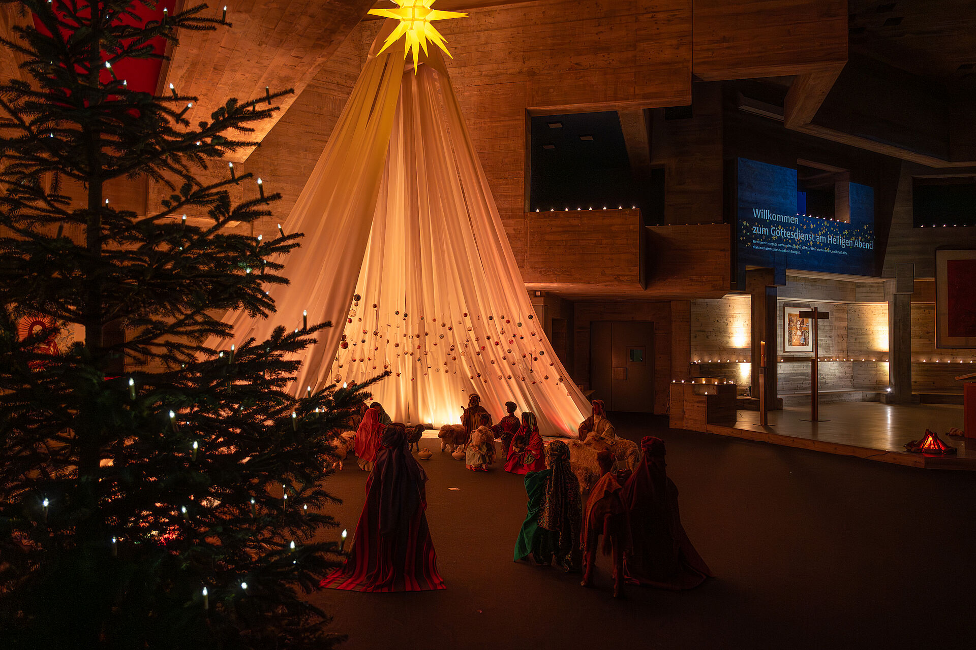 Nach dem im dunklen Kirchenraum gesungenen Lied „Stille Nacht“ kann sie kommen, die Heilige Nacht!