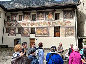 Das Castello di Santa Maria thront auf einem Hügel, den alle mühelos erklingen konnten. Die romanische Kirche steht mitten in den Ruinen der mittelalterlichen Burganlage. Dank unermüdlichem Einsatz von Silvia und Ulrike wegen eines widerspenstigen QR Code konnte das Portal der Kirche überhaupt geöffnet werden. Die digitale Knobelei hat sich sowas von gelohnt, denn es erwarteten uns wunderschöne Fresken aus dem 15. Jahrhundert. Die Aussicht vom Burgenhügel auf Giornico und in die Leventina war grandios, wobei das schöne Wetter das Seine beitrug.