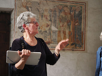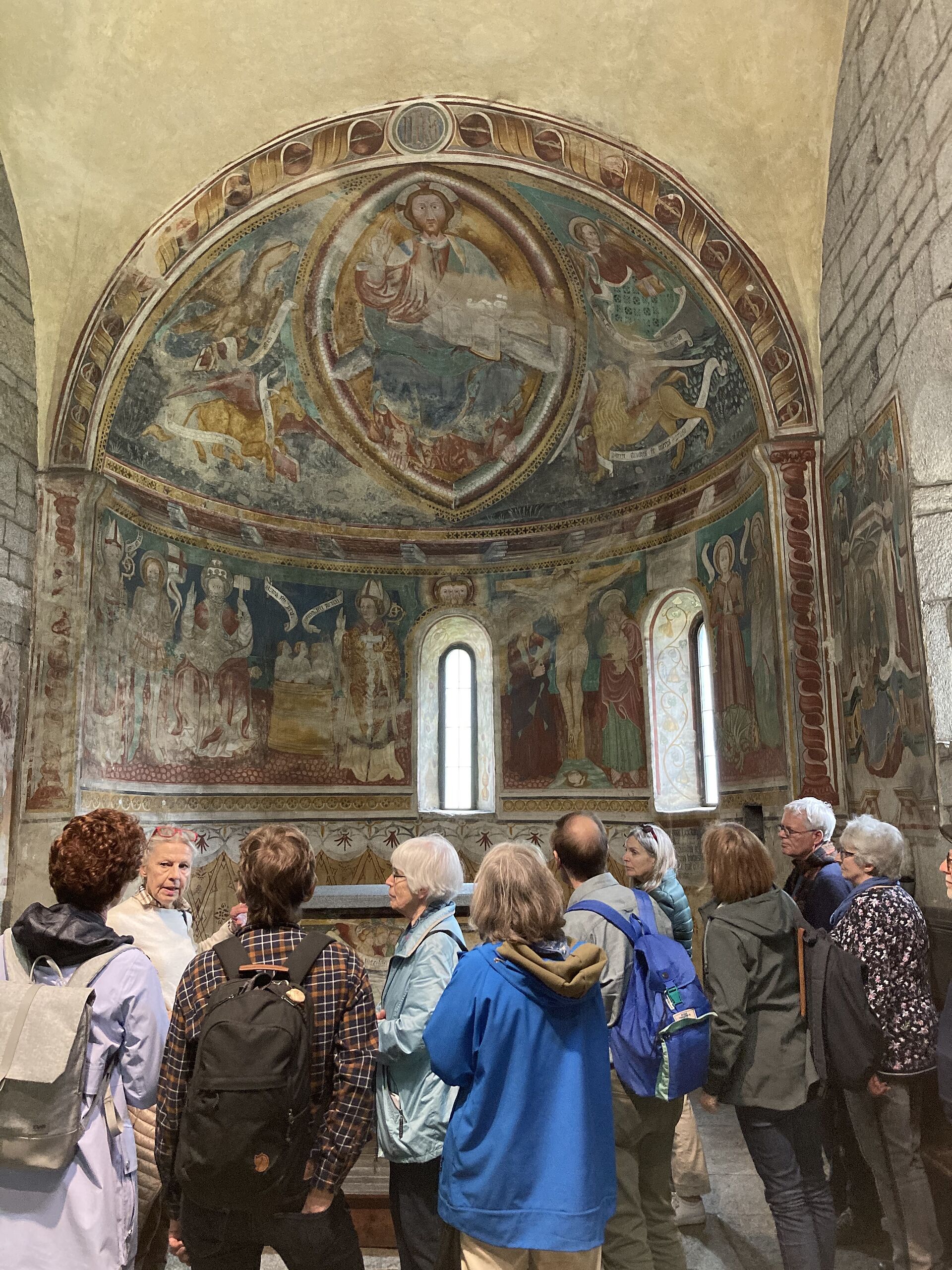 Gestärkt ging es zu Fuss ins historische, pittoreske Zentrum von Giornico. Von dort führte uns Signora Bassetti zu den einmaligen, zwei sakralen Sehenswürdigkeiten: „Santa Maria del Castello“ und ganz besonders das romanische Juwel „San Nicolao“. Ihre interessanten Ausführungen begleiteten uns die nächsten eineinhalb Stunden.