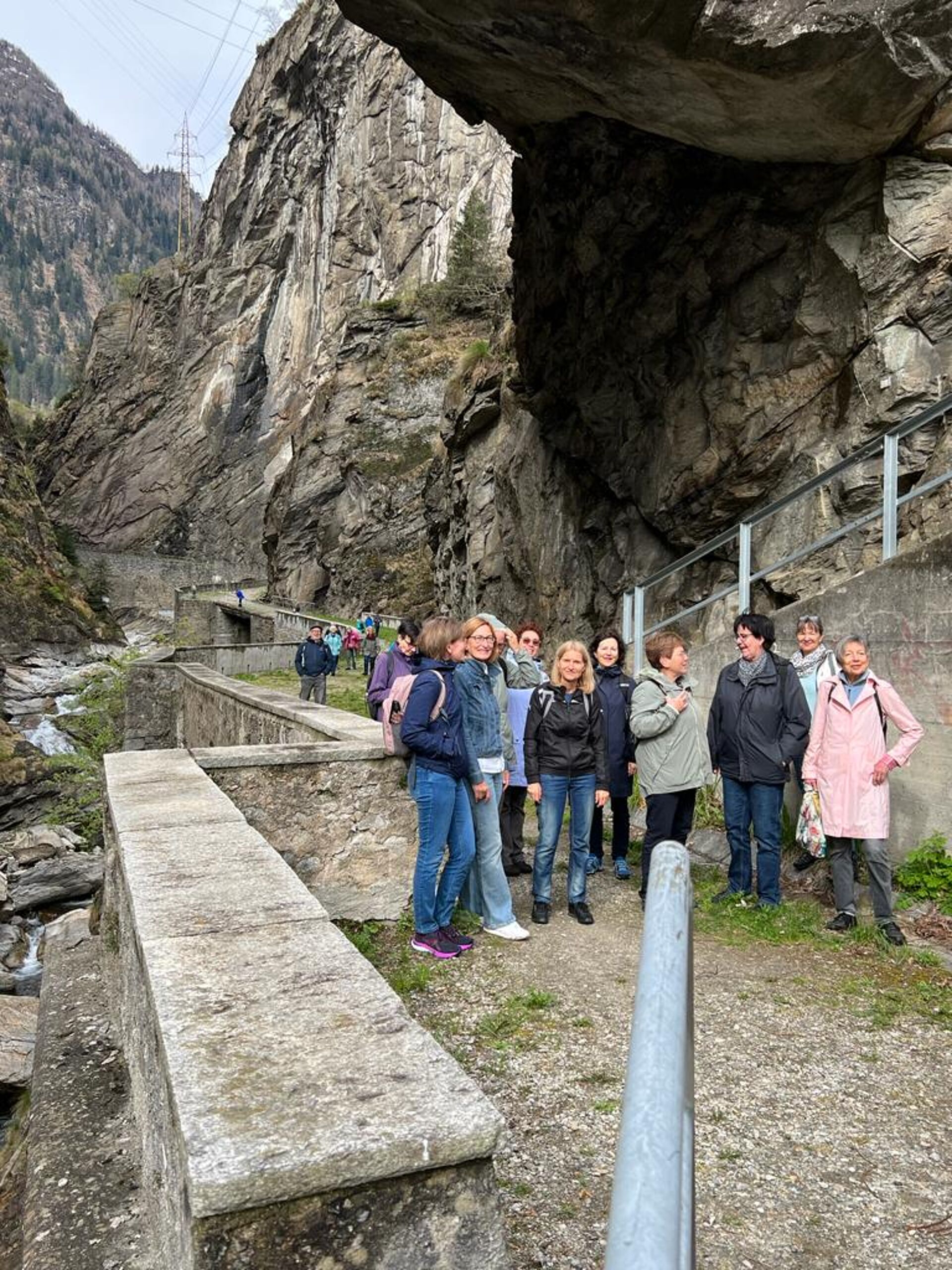 Der erste Halt nach dem Gotthard war bei der alten Sust und Zollstelle beim Dazio Grande mit der Piottino Schlucht, welche u.a. beliebt ist bei Ornithologen. Es konnte tatsächlich noch einen in den Felsen nach Nahrung suchender Mauerläufer beobachtet werden. Wir durchwanderten den engsten Teil der Schlucht auf der alten 1994 restaurierten „Strasse der Völker“.