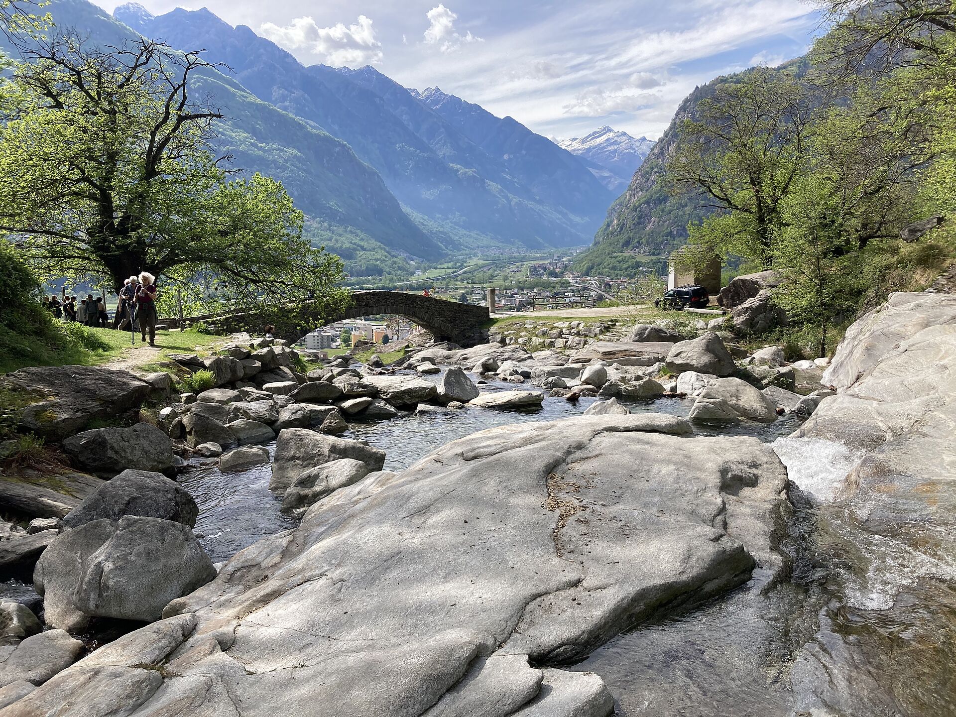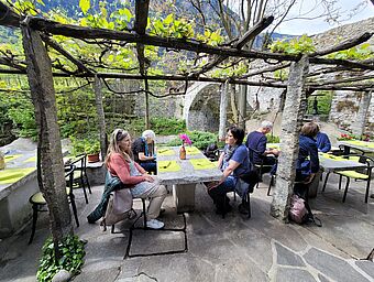 Nach so viel Kultur knurrte langsam der Magen. Im „Grotto dei due Ponti“ mit traumhafter Lage am jungen Ticino erwartete uns ein feines Mittagessen alla Ticinese. Alle genossen das typische Grotto Ambiente, flankiert von Brasato mit Polenta, Spargel-Lasagne oder einer Parmigiana mit Auberginen.