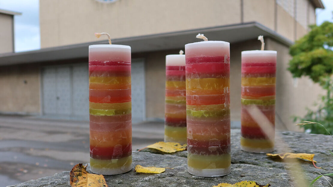 Die von Yvonne Blaser hergestellten Kerzen werden das Thema im Advent begleiten – und es werden weitere Kerzen gegossen und verziert. Foto: R. Imlig