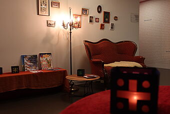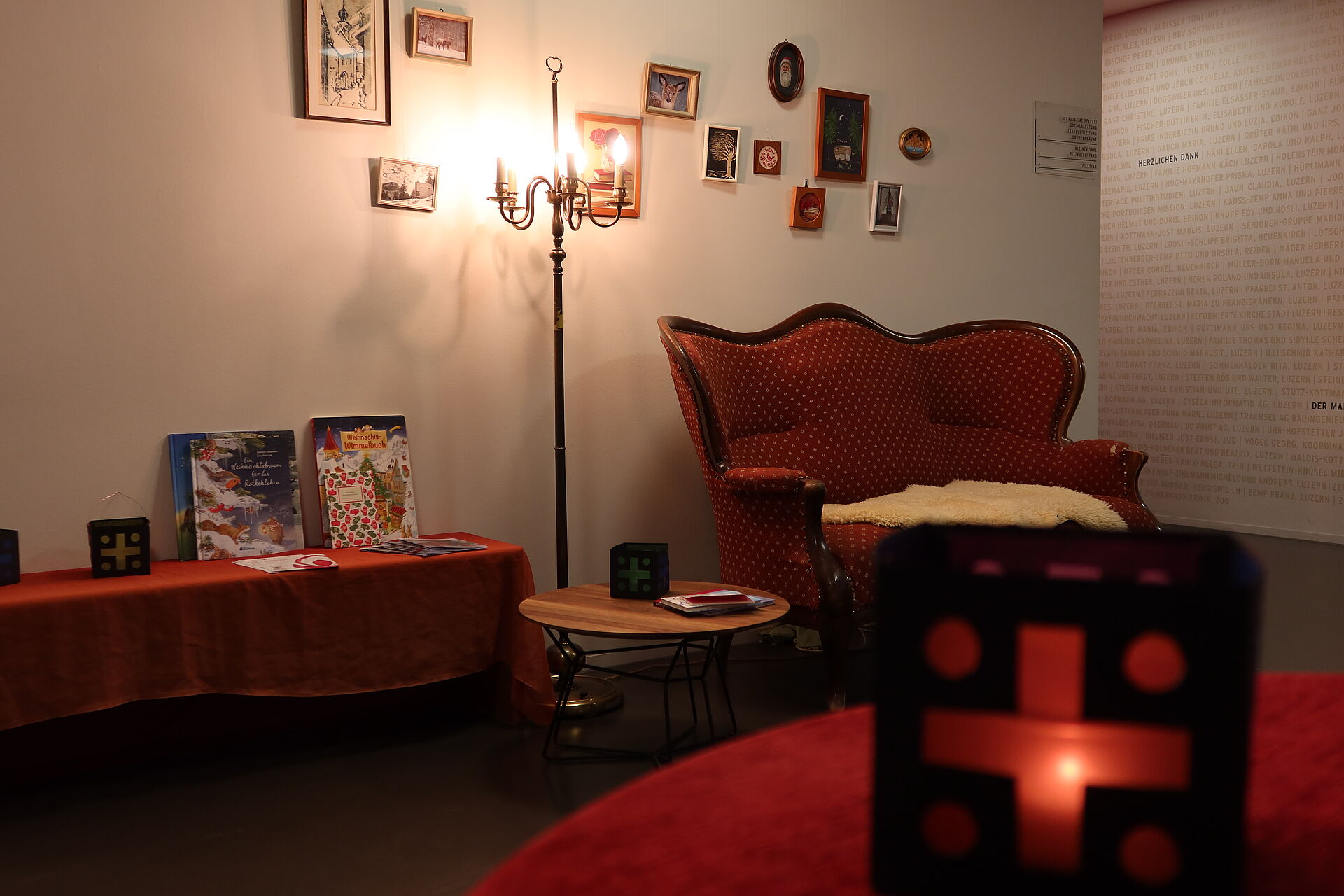 Wer nicht nur Licht sondern auch Wärme sucht, ist herzlich in die Sitzecke im Foyer eingeladen. Ein Korb mit Büchern steht bereit, um zu verweilen und die adventliche Atmosphäre zu geniessen.