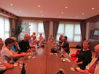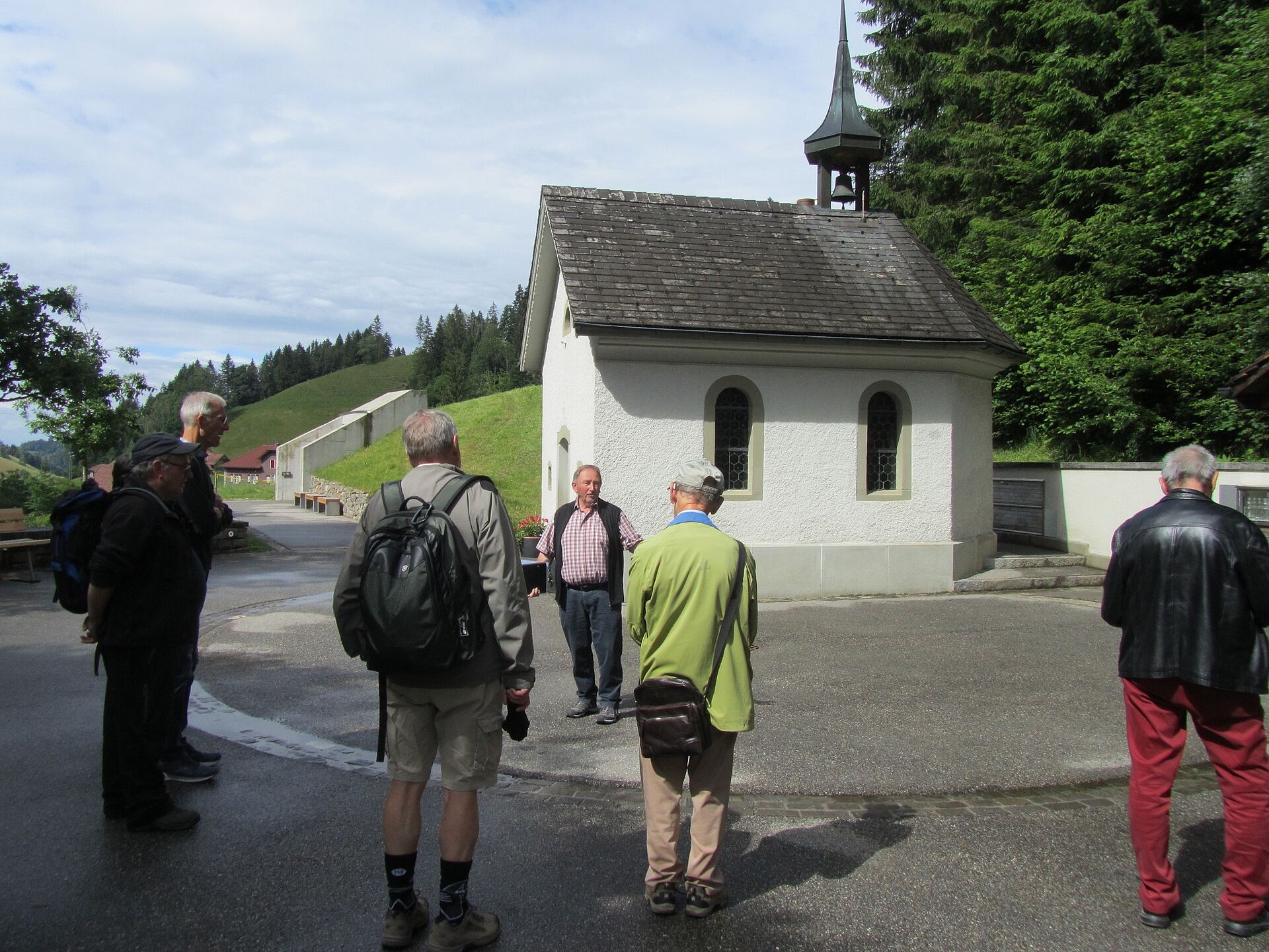 Auf dem gemütlichen Lutrun-Weg wanderten wir von Luthern nach Luthern-Bad. Nach einem kurzen Trunk im Gasthaus Hirschen führte uns der Lokalhistoriker Isidor Lustenberger (Cou-Cousin von Markus) in die Geschichte des Wallfahrtsortes ein. Mit einem kleinen Seitenhieb auf unseren Umtrunk meinte er, gewöhnlich käme zuerst die Wallfahrt und erst anschliessend die Wohlfahrt.