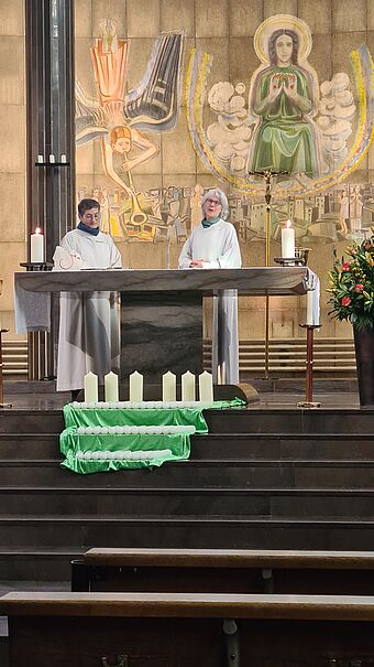 Armin Huber stellte Claudia Jaun der Gemeinde vor. Der Gottesdienst wurde musikalisch von Heinrich Knüsel am Piano und Layla Wettstein am Cello umrahmt. Judith von Rotz, ebenfalls Pfarreiseelsorgerin in St. Karl, hatte schon den Abschied von Eugénie Lang mitgeprägt und begleitete nun auch die Begrüssung von Claudia Jaun. Sie sprach am Ende der Feier auch den Segen: