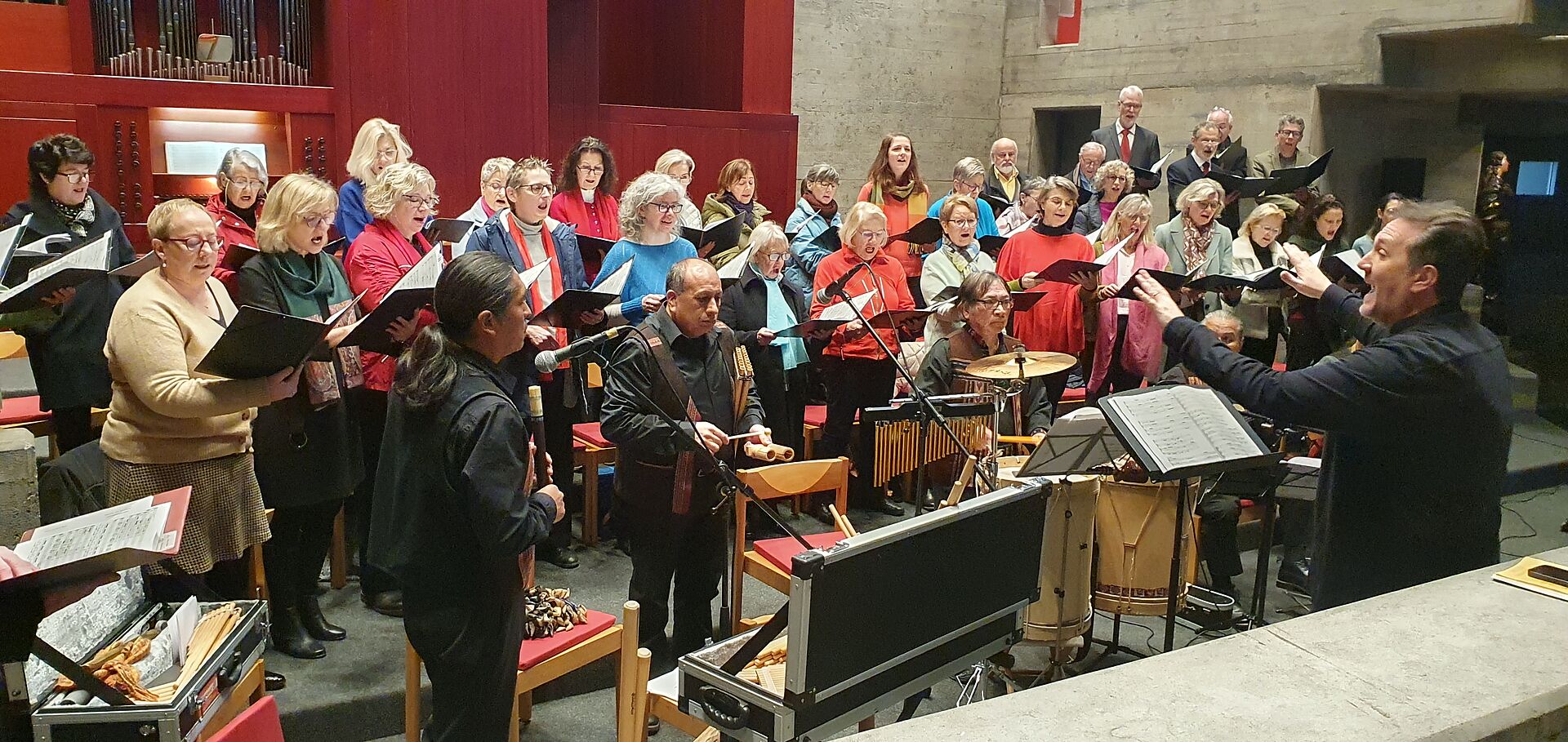 An Weihnachten wurde das Werk „Navidad Nuestra“ des argentinischen Komponisten Ariel Ramirez vom JohannesChor mit Gastsänger:innen, Daniel Zihlmann als Tenor, Beat Heimgartner an der Orgel und der Band „Curmi de Bolivia“ unter der Gesamtleitung von Fausto Corbo mit weihnächtlichem Glanz und voller ansteckender Energie interpretiert. Der riesige und begeisterte Applaus der grossen Weihnachtsfestgemeinschaft war ein wunderbarer Lohn für die Probenarbeit der Chormitglieder.