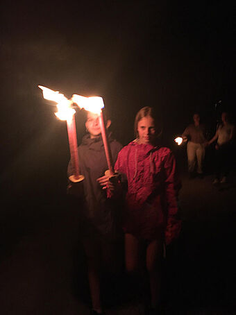 Nach dem Zimmerbezug im Holzhof machten wir uns nochmals auf den Weg mit Fackeln bis zu einer Feuerstelle, wo wir den Abend noch beim Bräteln ausklingen liessen.
