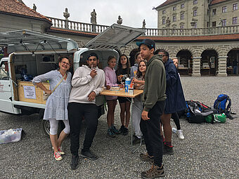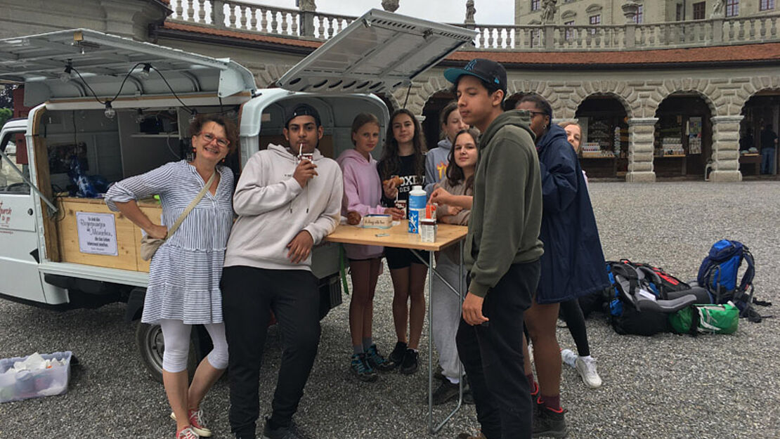 Zwar noch nicht ganz ausgeschlafen genossen wir das Frühstück beim "Church to go" Mobil auf dem Kosterplatz. "Church to go" steht für spontane Begegnungn und Gespräche und dies funktionierte auch mit uns - herzlichen Dank Franziska.