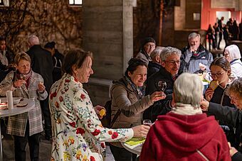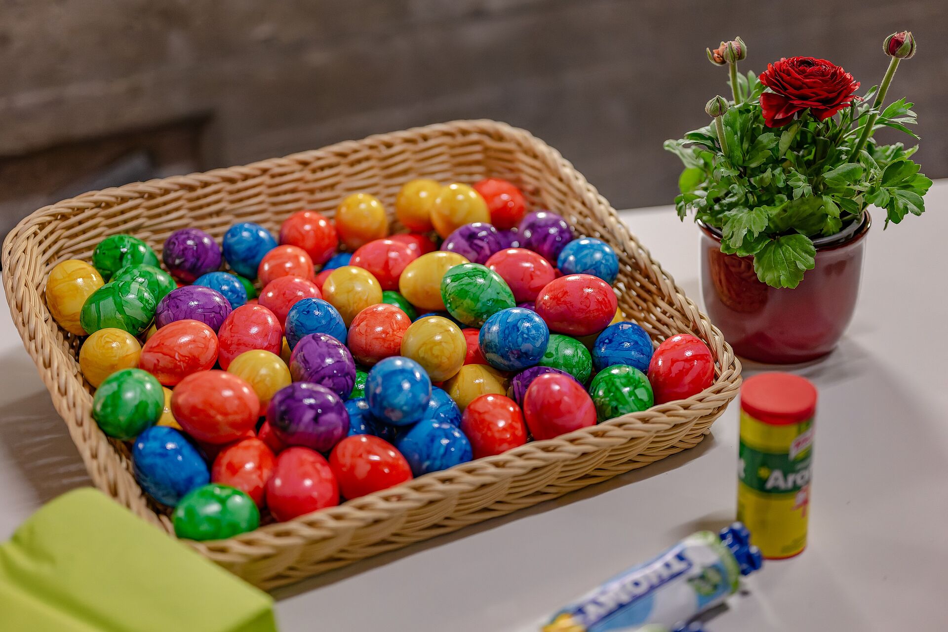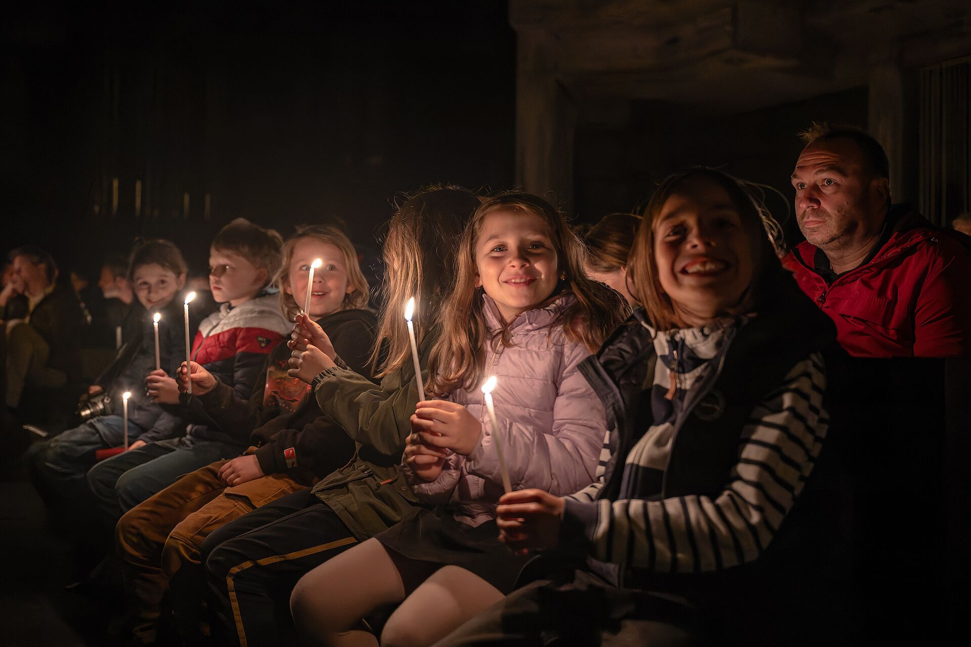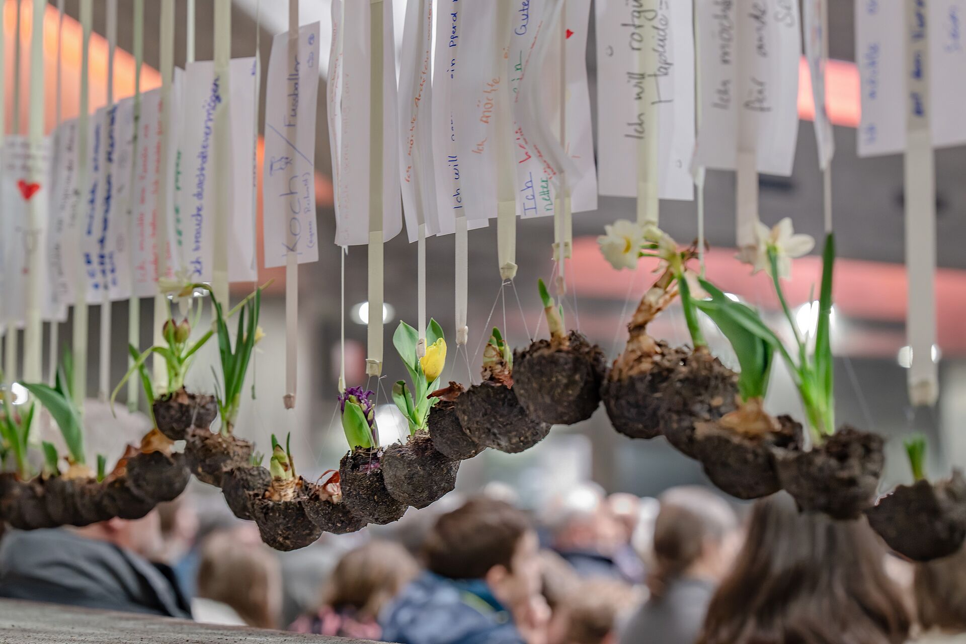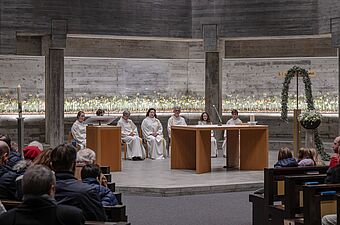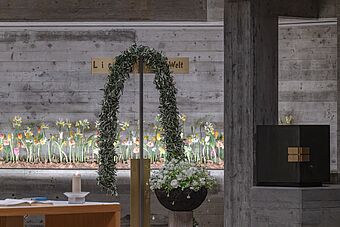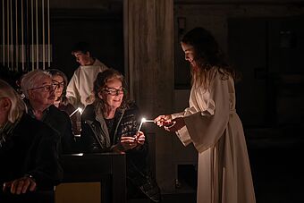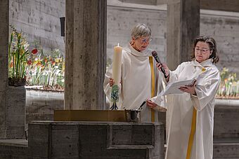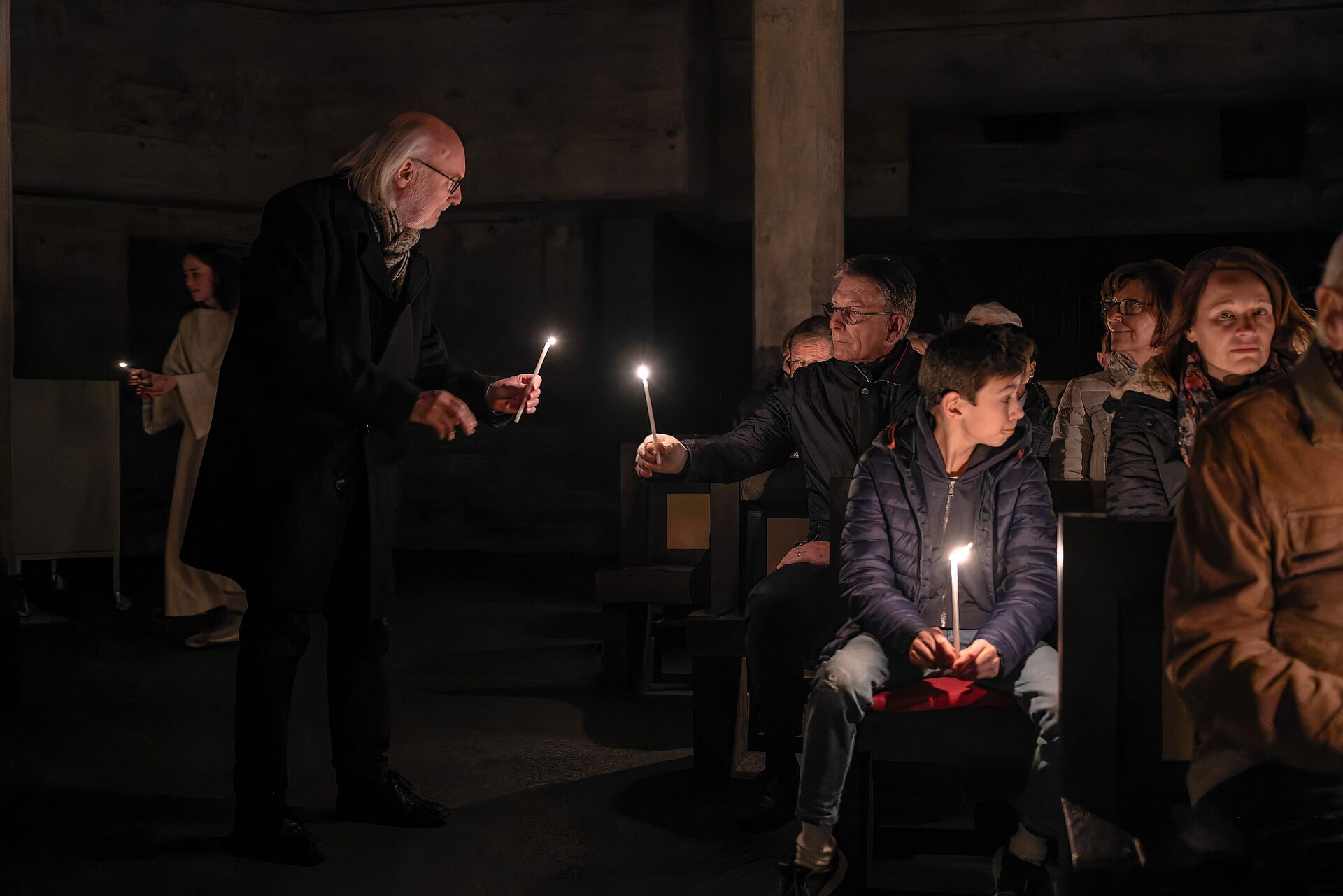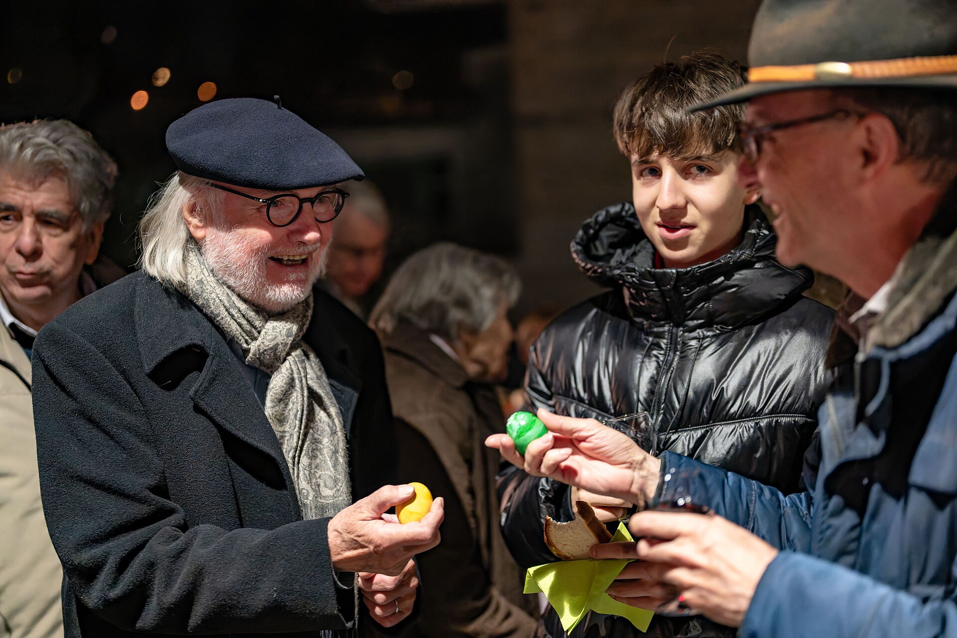 Stimmungsvolle Bilder von der Nacht der Nächte: Osterfeuer, Lichter anzünden in der dunklen Kirche, Osterlob von Sebastian Lipp, Segnung der neuen Osterkerze, JohannesChor, Spring String Quartet, anschliessend Eiertütschen im Innenhof.