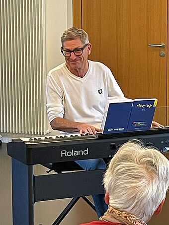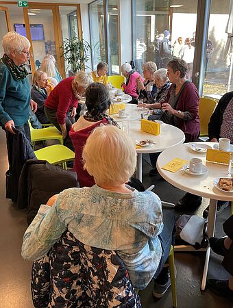 Trotz Sturmböen konnten Heidi Brunner und Brigitte Hofmann-Käch viele Interessierte begrüssen. Philippe Frey berichtete übers sein Leben und erzählte von seinen Jahren im Kloster und der Freude als Kirchenmusiker. Das Publikum erfreute sich an seiner Strahlkraft und am gemeinsamen Singen. Bei Kaffee und Kuchen im Bistro fand der Nachmittag einen gemütlichen Ausklang.