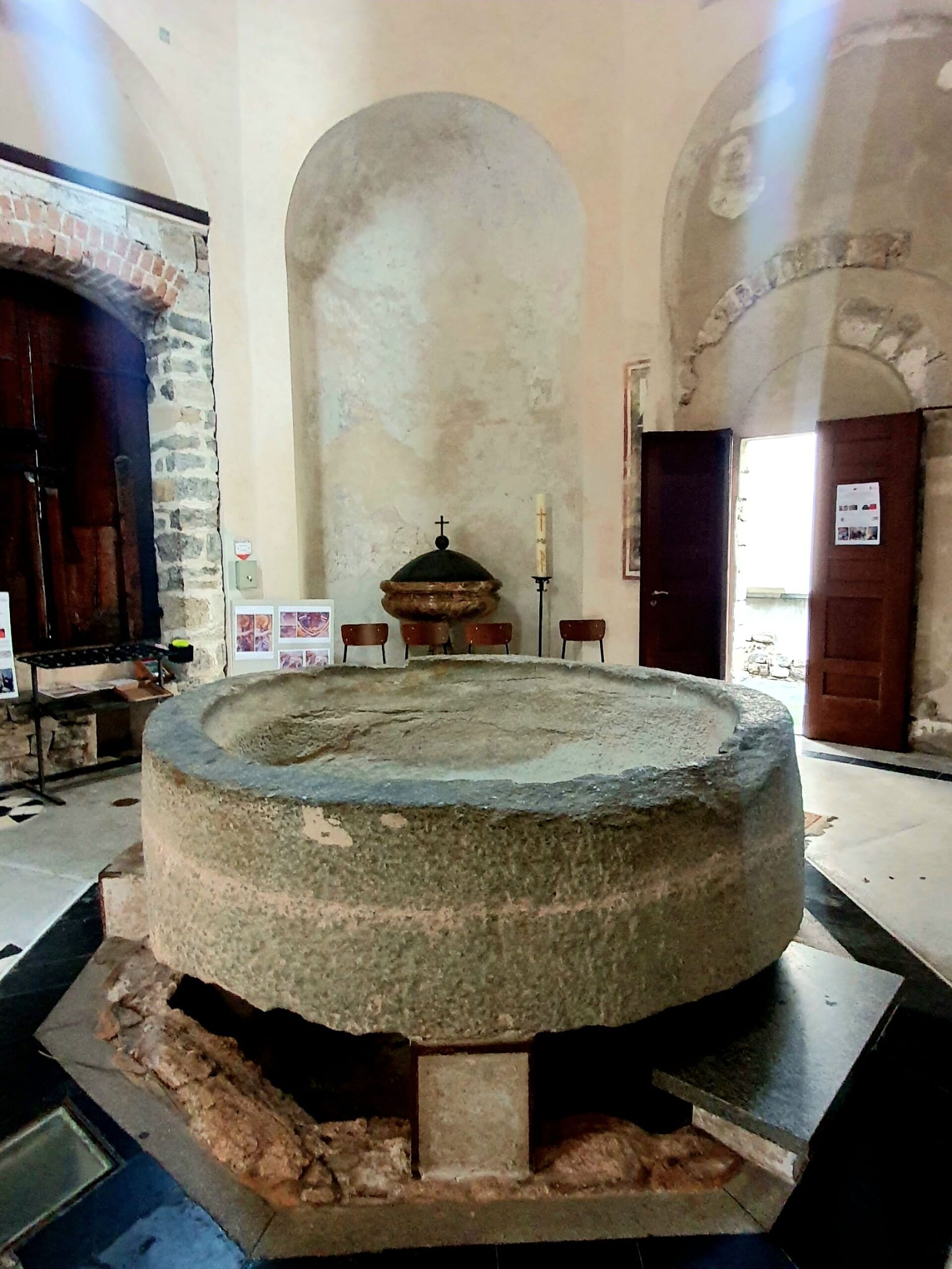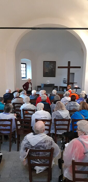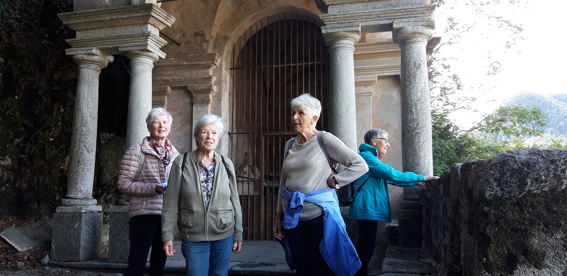 Am Freitag 22. September fuhr eine fröhliche Reisegruppe Richtung Gotthard. Auf dem Pass erwartete uns ein eisiger Wind, mit Regen vermischt. Die meisten schauten sich das Nationalmuseum an, die Reiseleitung mit dem Chauffeur wanderten durch die Festung Sasso San Gottardo und schauten sich unter anderem die Sonderausstellung von Göthe an. Kaum sassen alle nach der Mittagspause im Bus fing es in Strömen an zu regnen. Beeindruckende Wasserfälle sprudelten links und rechts ins Tal. Wir machten einen Zwischenhalt in Riva San Vitale und besuchten das Baptisterium. Danach gings weiter ins Hotel am Varese-See bei Varese. Die Gruppe wurde zu einem Willkommensapéro von einer Teilnehmerin eingeladen, die am selben Tag vor genau 50 Jahren geheiratet hatte. Bei einem feinen Abendessen schlossen wir den Tag ab.