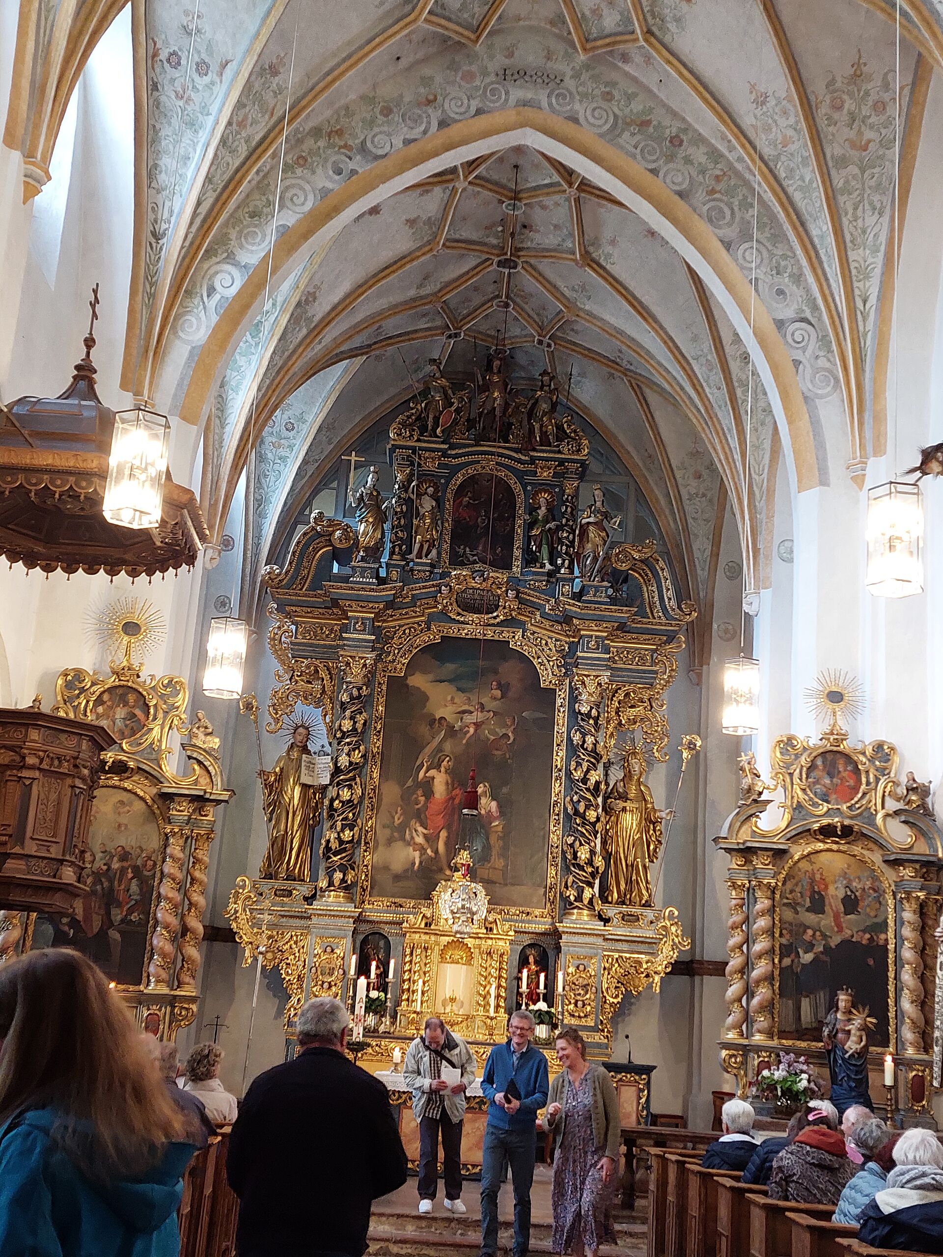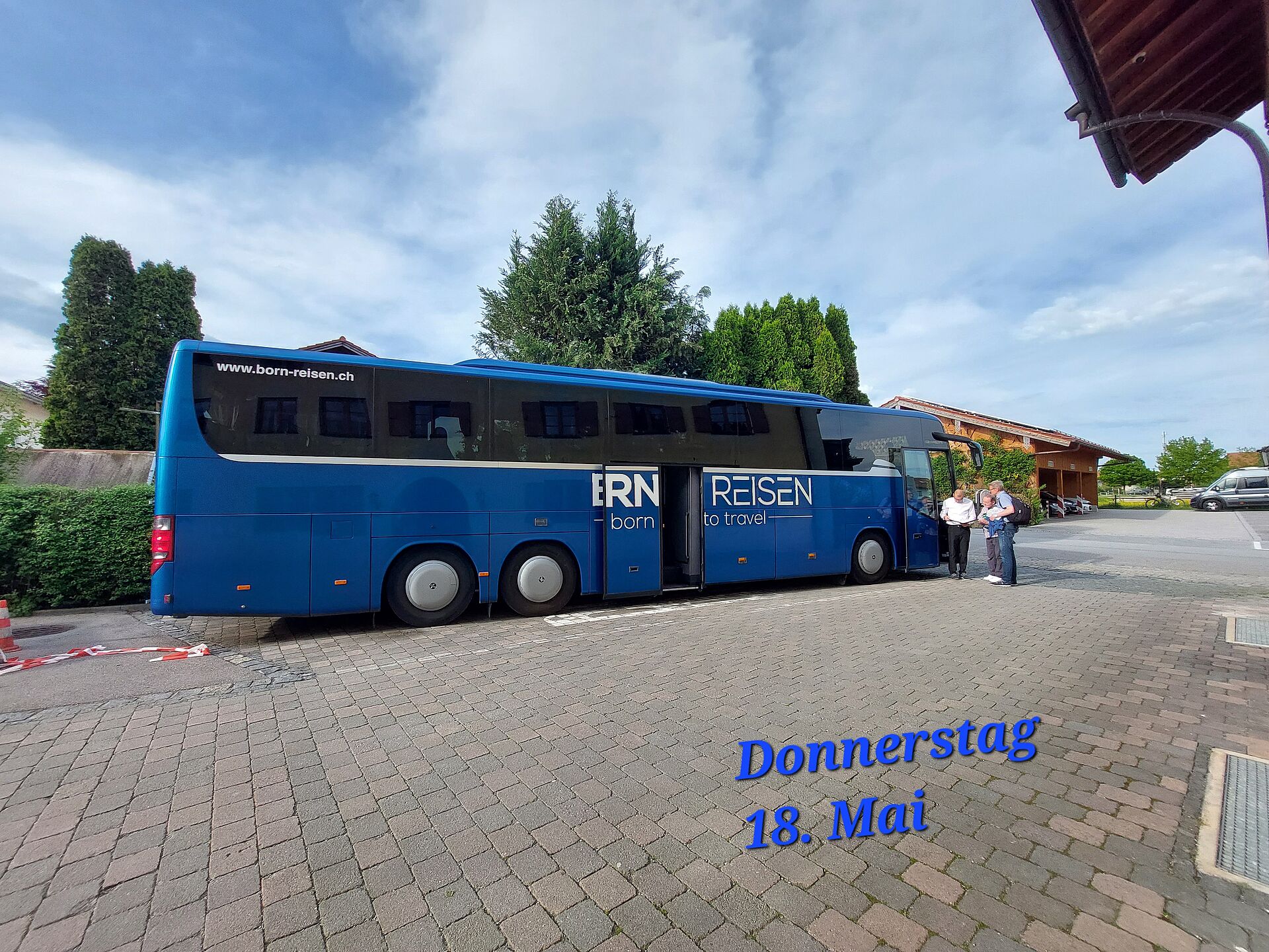 Frühmorgens an Auffahrt machte sich eine frohgelaunte Reisegruppe von 48 Personen auf den Weg nach Südbayern, um das Wochenende vom 18. - 21. Mai 2023 gemeinsam zu verbringen. Der Regenschirm blieb immer im Koffer! In der Markthalle Altenrhein, einem Hundertwasser-Architekturprojekt, wurde ein feiner Kaffee mit Gipfeli serviert. Danach führte die Reise durch das schöne Allgäu an den Hopfensee und anschliessend zum Kloster Ettal. Und schon bald durften wir die typisch bayerische Gastfreundschaft in unserem Hotel in Rosenheim-Happing erleben. Am Freitag fuhren wir über das «Bayerische Meer» bzw. über den Chiemsee zur kleinen und ruhigen Fraueninsel, wo wir in der Klosterkirche einen eindrücklichen Gottesdienst, gestaltet von Urs Brunner, feiern durften. Am Samstag ging es mit der Zahnradbahn hoch auf den Wendelstein und nach einem feinen Mittagessen mit der Seilbahn nieder zur Talstation, wo uns Florian, unser Top-Buschauffeur, zu einer speziellen Fahrt auf einer Privatstrasse mit toller Aussicht und extrem enger Tunneldurchfahrt empfangen hat und uns nach Rosenheim führte, wo wir eine spannende Stadtführung mit freiem Aufenthalt erleben durften. Nach einem reichhaltigen Buffett am Samstagabend im Hotel startete die Heimreise mit dem Besuch in Tegernsee und in Mittenwald mit den bunt bemalten Häusern. Danach genossen wir die schönen Landschaften und Gebirge des Tirols und erreichten über den Voralberg das Rheintal, wo es nach einem gemütlichen Halt nach Luzern weiterging. Zufriedene Reisende durften auf eine abwechslungsreiche Pfarreireise zurückblicken.