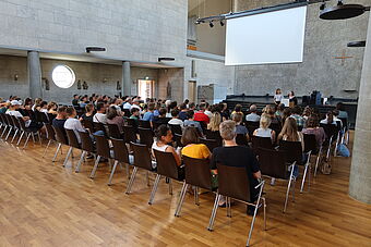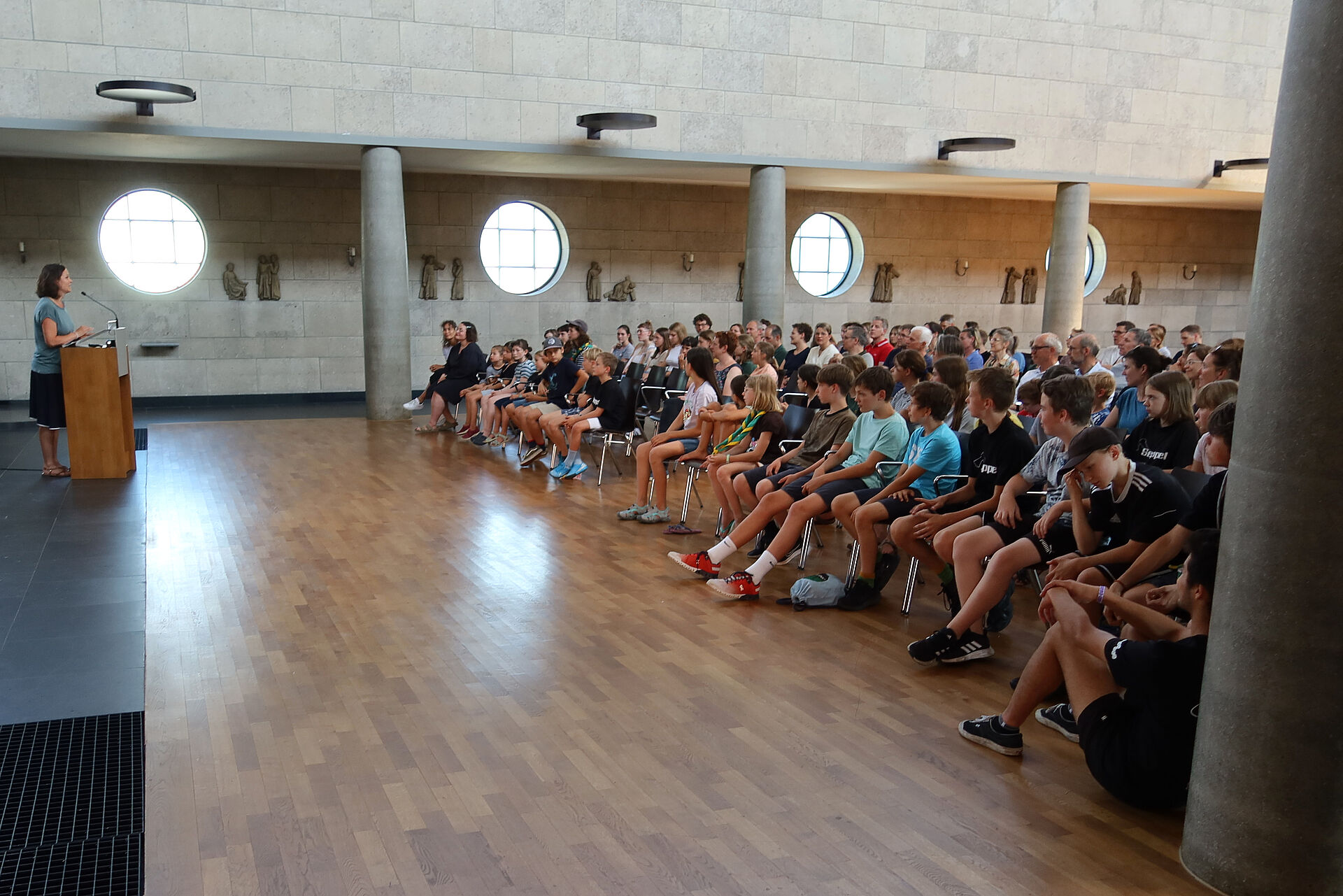 In der Feier wurden die beiden neuen Co-Präses Amina Harkou und Gill Hafner begrüsst. Sie gaben den drei Leitungsteams eine Care-Tasche mit wichtigen Gadgets für ein gelingendes Zusammensein im Pfadilager mit. Beim Apéro mit Sommerbowle konnten die Pfadis sich mit neuen Pullis und T-Shirts eindecken.
