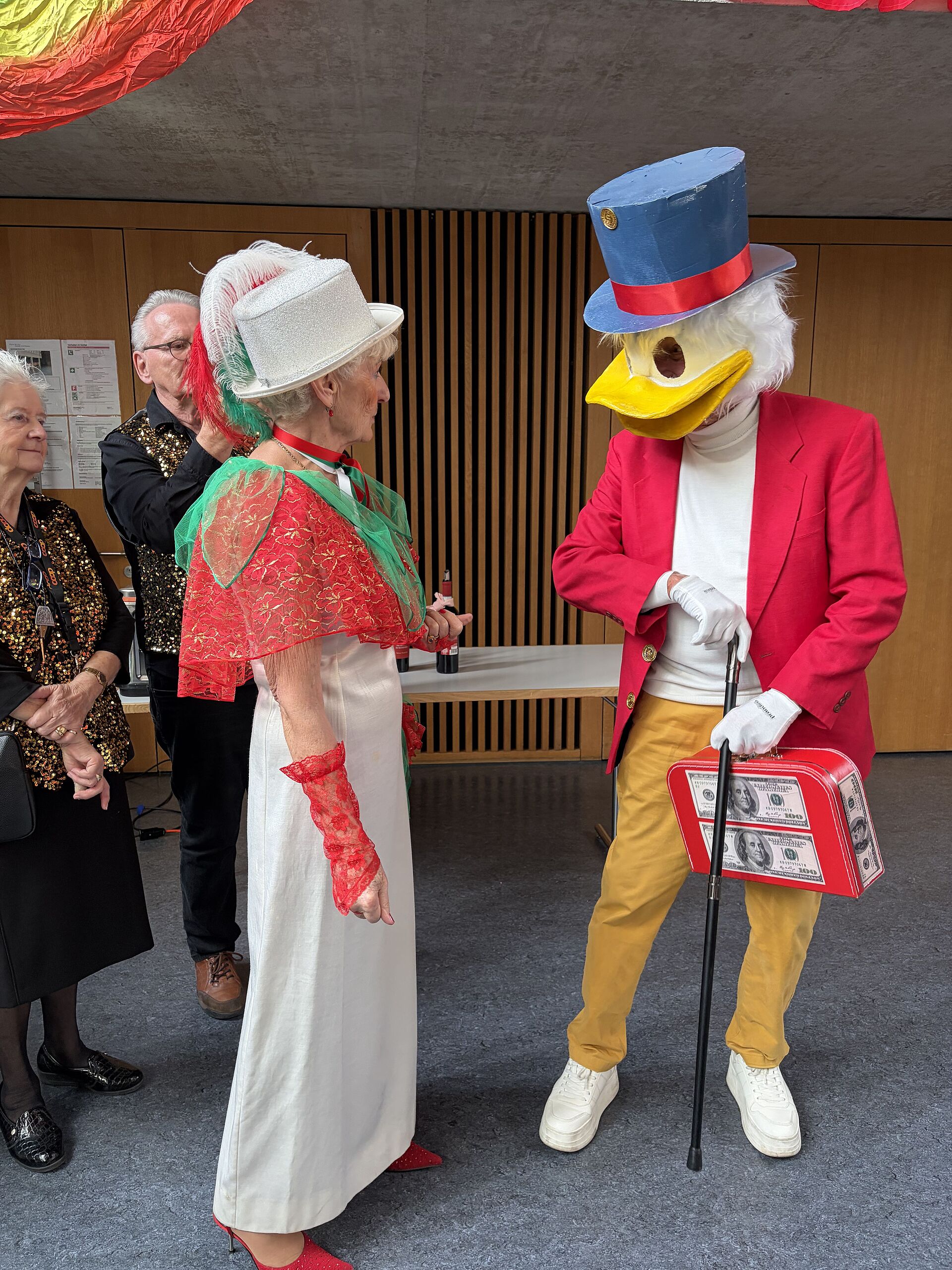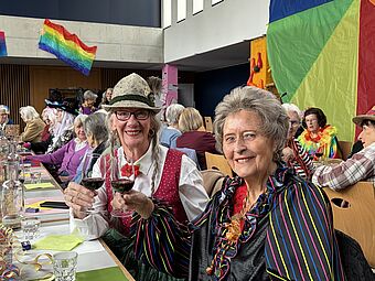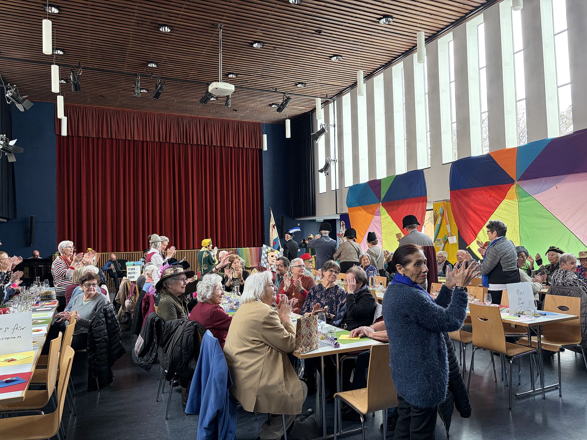 Die Stockhüttebuebe empfingen die Gäste mit lüpfiger Ländlermusik. Mit dem Einzug einer Delegation der Zunft zum Dünkelweiher, dem Zunftmeisterpaar René und Antoinette Steck sowie dem Weibelpaar Edi und Lisbeth Scherer, wurde der Nachmittag zum bunten, fasnächtlichen Treiben. Das Seniorentreff Team bewirtete die gut gelaunten Gäste mit einem feinen Zvieri.