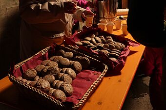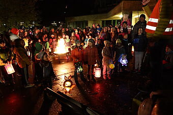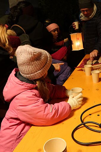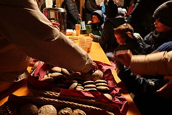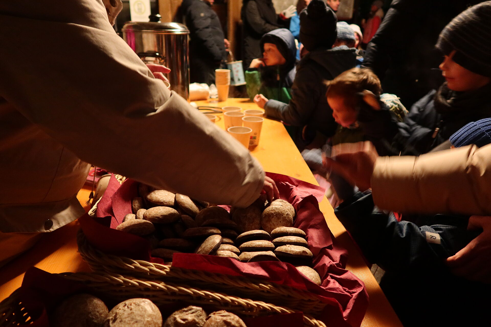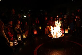 All die stolzen Laternenträger:innen genossen nach dem Umzug einen Moment am grossen Feuer, stärkten und wärmten sich mit Punsch und Lebkuchen.