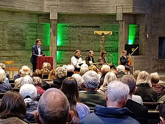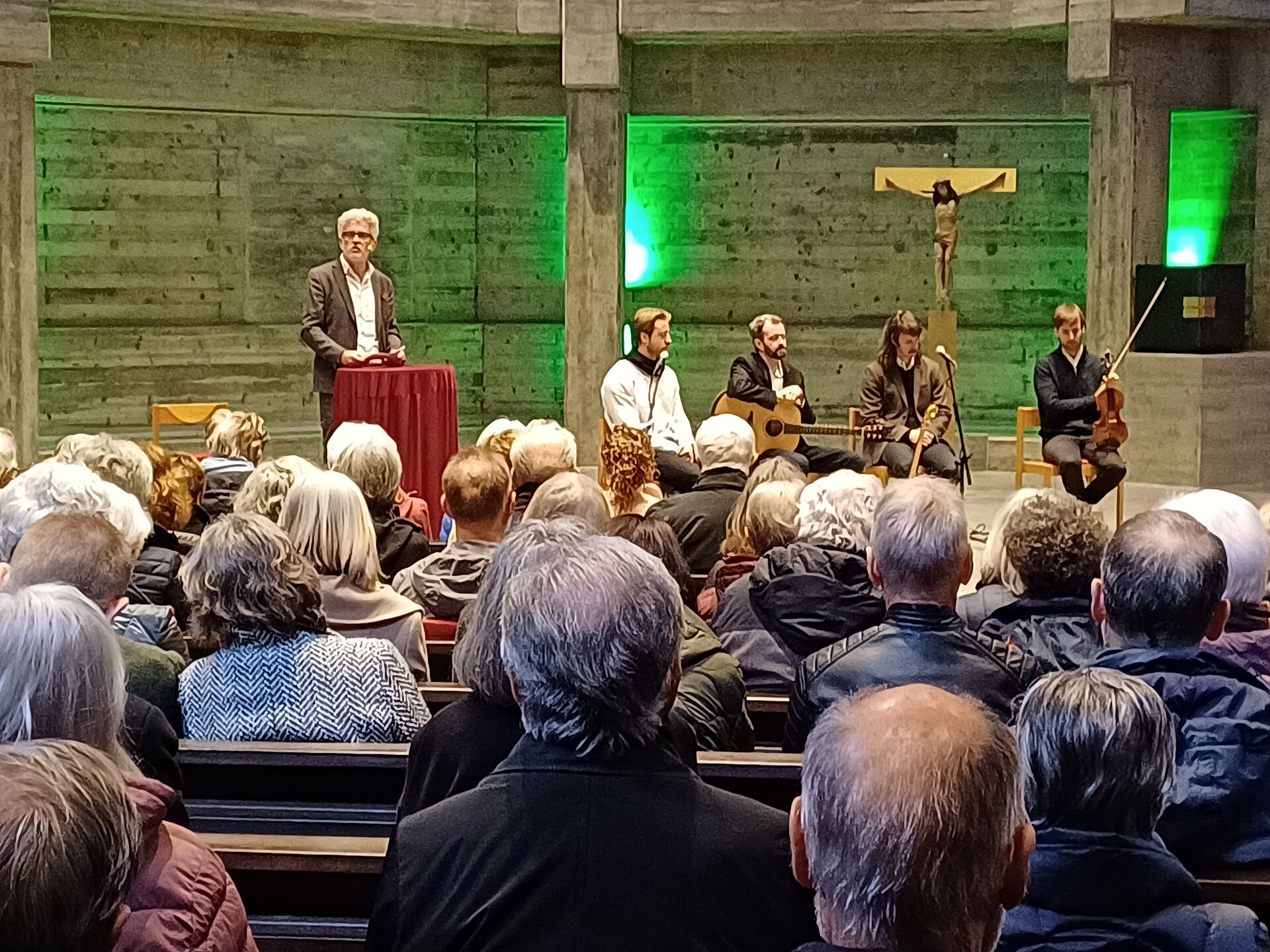 Nahezu 300 Personen in der Johanneskirche genossen die irische Musik von The Led Farmers und liessen sich inspirieren von den überraschend aktuellen Texten des amerikanischen Naturpoeten und Gesellschaftskritikers Henry David Thoreau (1817-1862), hervorragend gelesen von Sprecher Franz Szekeres.