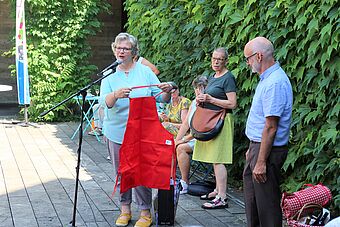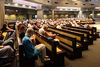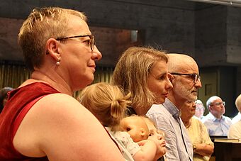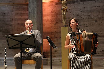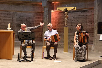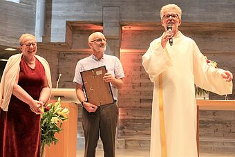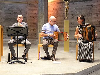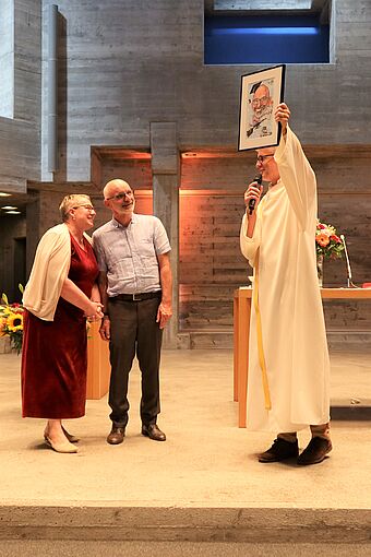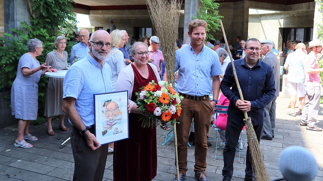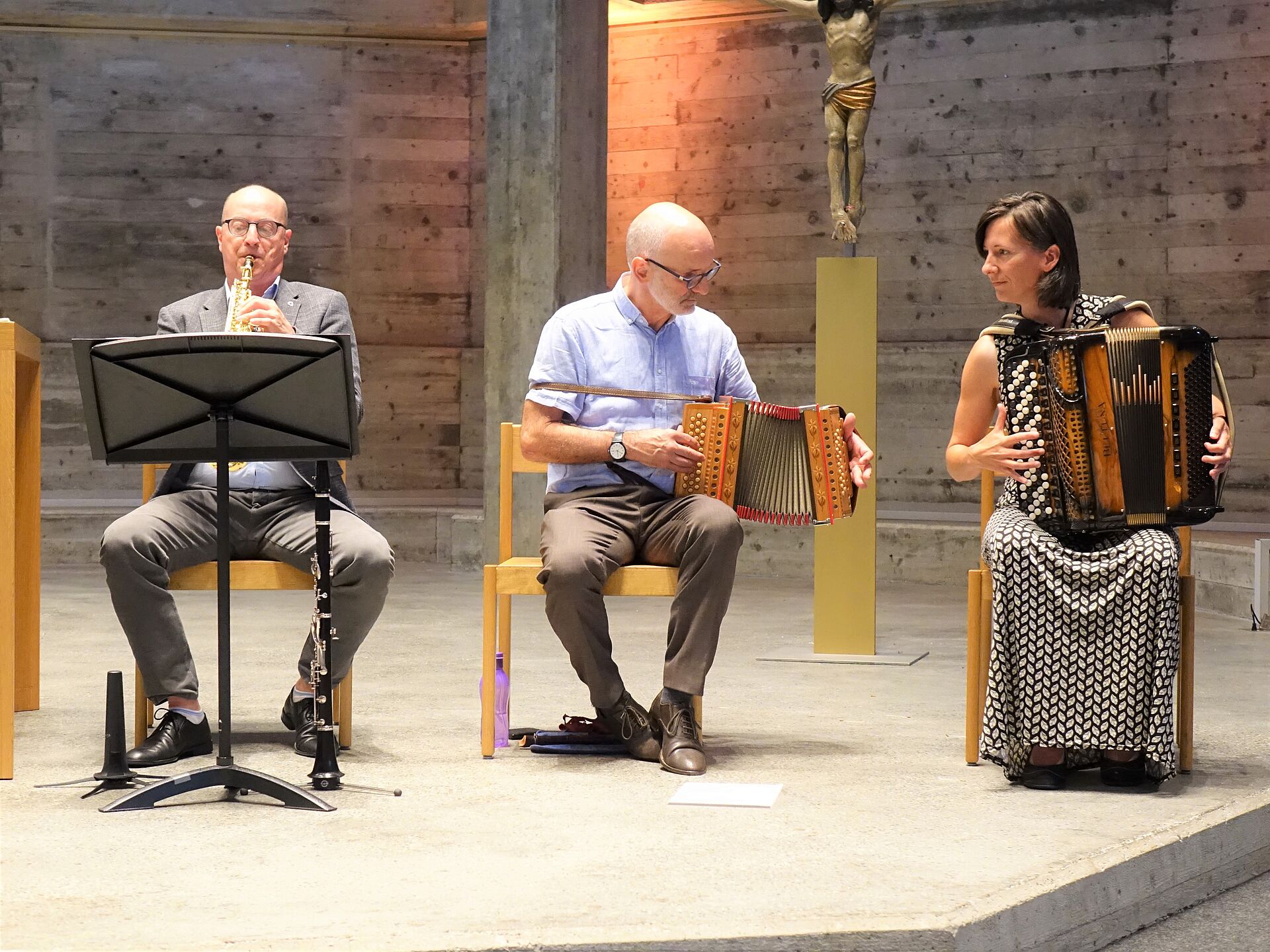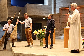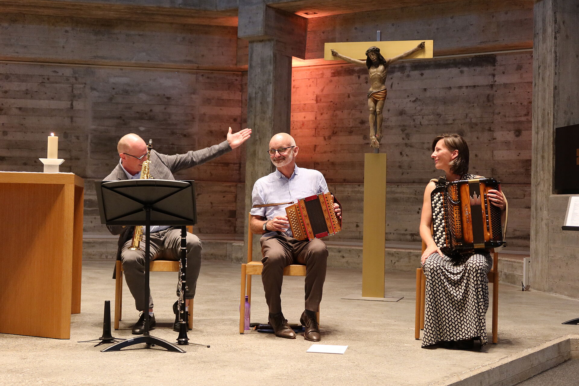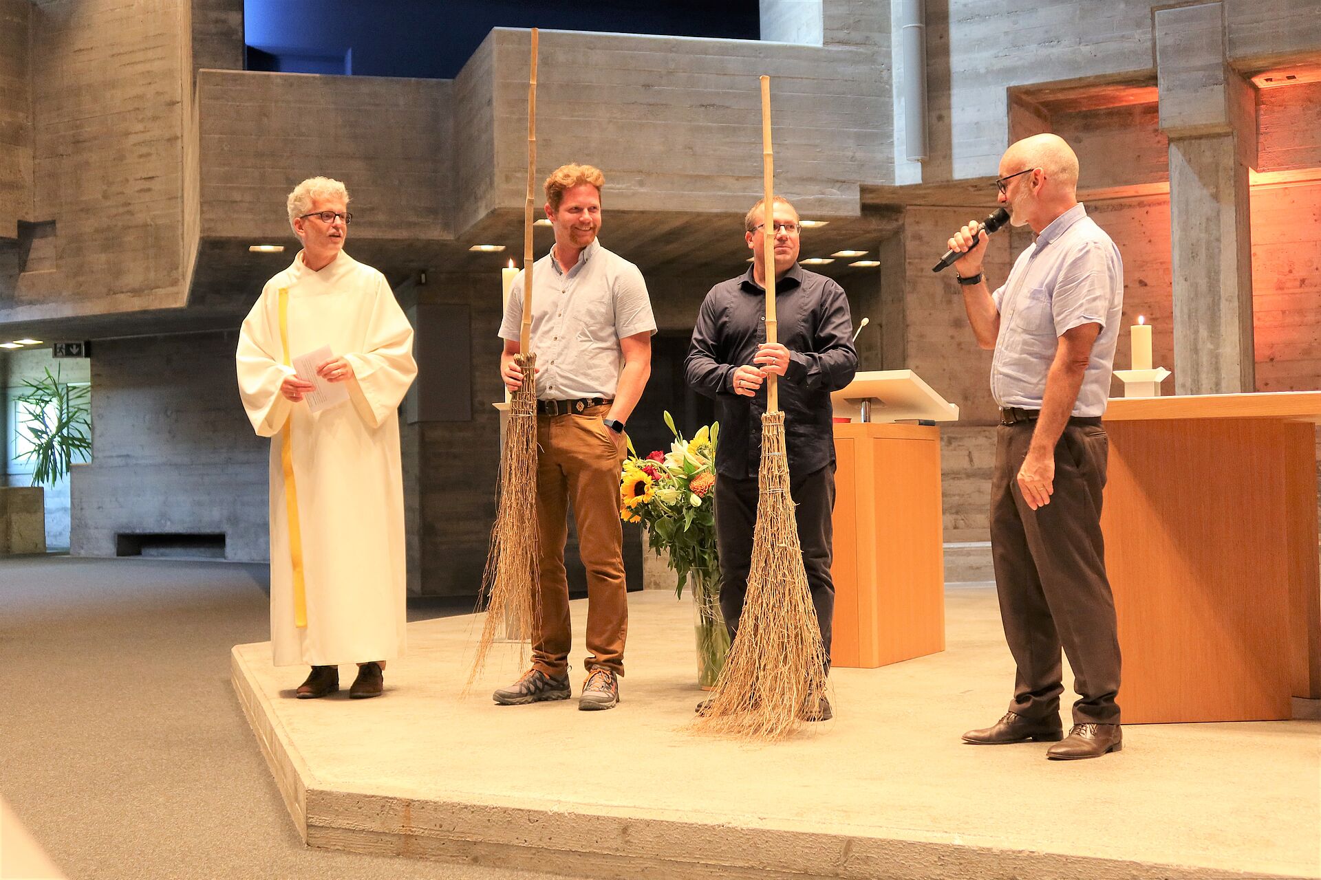 Am Sonntag 19. Juni füllte sich die Johanneskirche und man wusste nicht, ob die Leute kamen, um die Musik von Claudia Muff (Akkordeon) und Josi Fischer (Klarinette) oder die Predigt von Sepp Riedener zu hören, dem Gründer der kirchlichen Gassenarbeit. Die meisten kamen jedoch, um bei der Verdankung und Verabschiedung von Franz Gantner mit dabei zu sein, der über 30 Jahre lang mit seiner fröhlichen und menschenfreundlichen Persönlichkeit unglaublich viel beigetragen hat zum Gelingen des Pfarrei- und Quartierlebens. Franz Gantner überreichte mit sichtlichem Genuss zwei Besen den beiden Nachfolgern Philipp Winiger und Lars Ulrich. Freude und Dankbarkeit über das Vergangene und Zukünftige herrschte im St. Johannes, wie die folgenden Impressionen zeigen:
