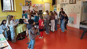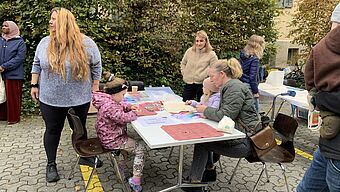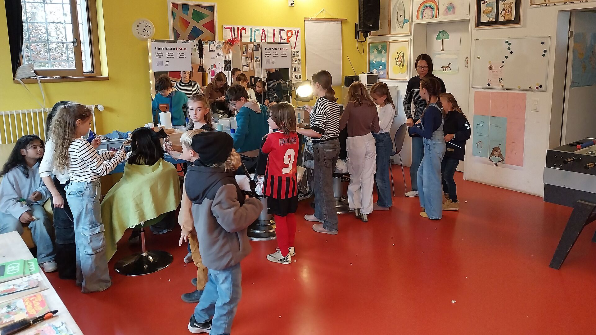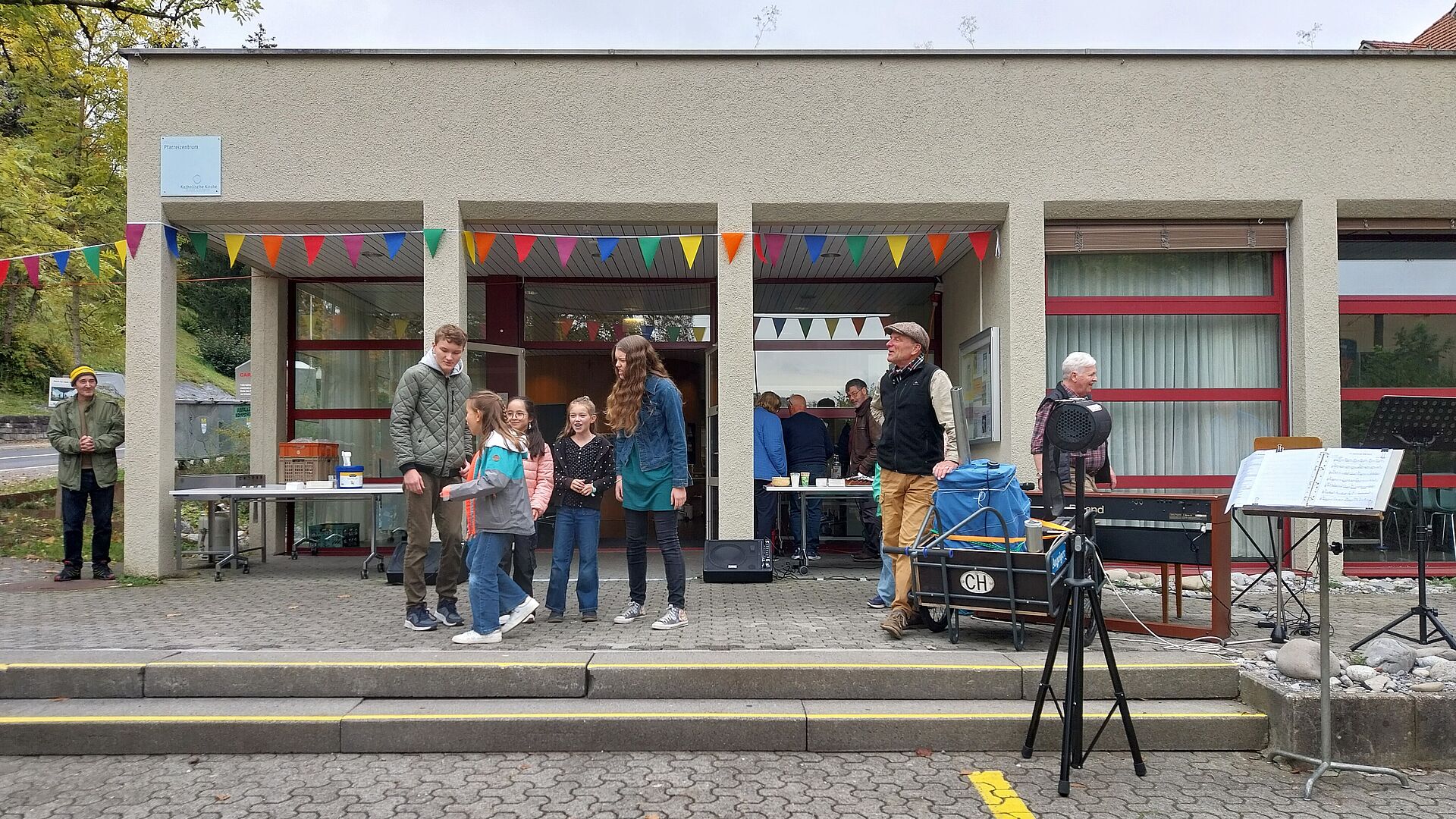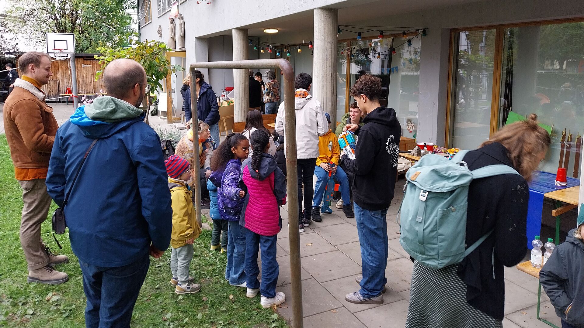 Das Wetter war viel besser als im Voraus angekündigt. So konnten viele wichtige Attraktionen wie Glücksrad, Büchsenschiessen, Schminken und fröhlicher Kindergesang draussen auf dem Parkplatz und im Pfarreigarten stattfinden, während in den Innenräumen des Pfarreizentrums Angebote wie der Salon Schön und die Disco stattfanden.