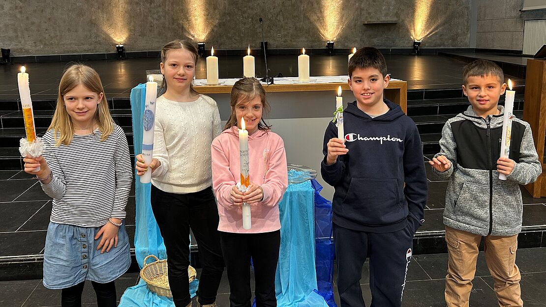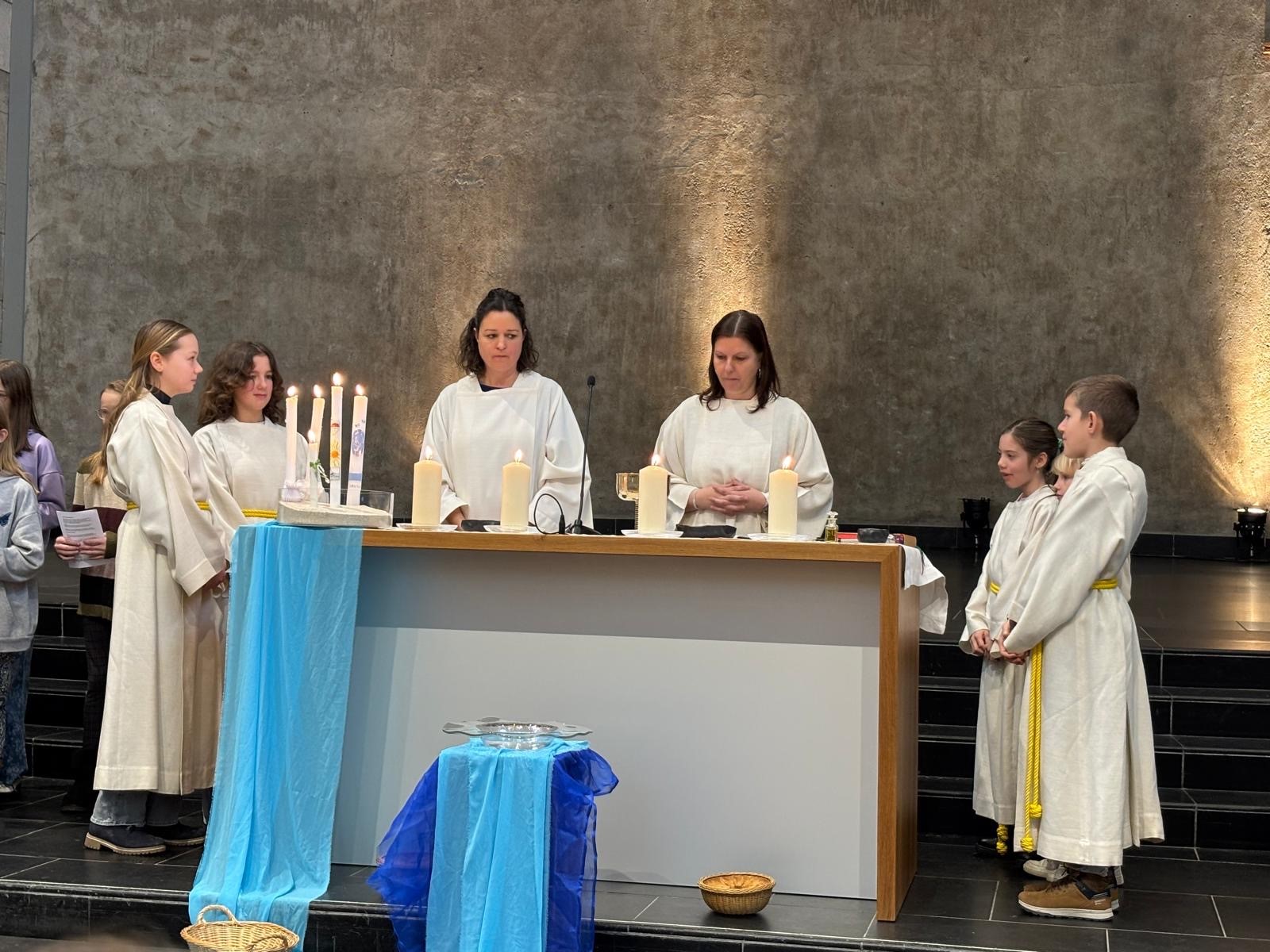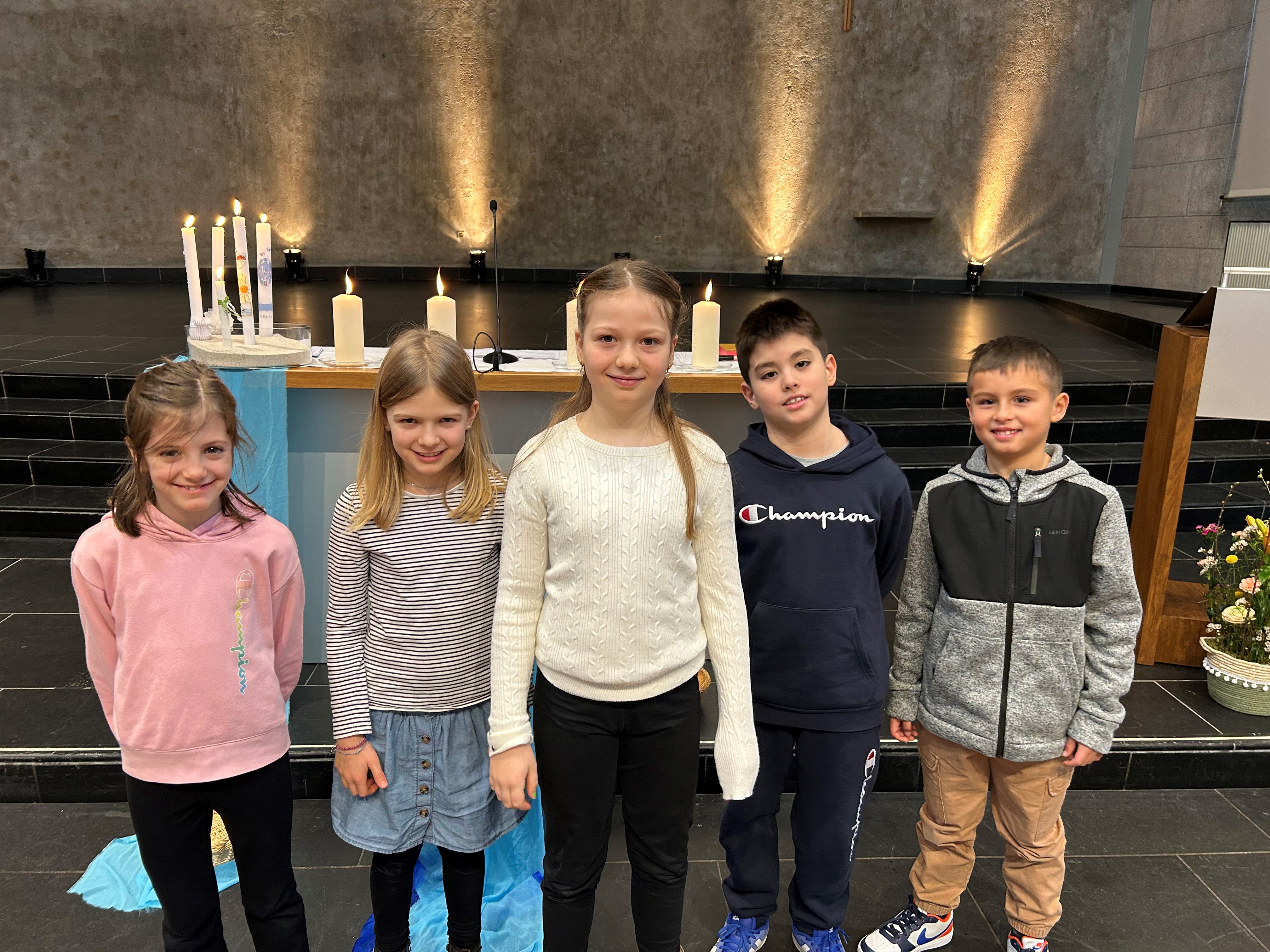 Am Sonntag haben fünf Kinder in einem festlichen Gottesdienst an ihre Taufe erinnert. Sie zündeten ihre Taufkerzen an und gaben das Licht symbolisch an die Gottesdienstbesucher:innen weiter. Es war ein bedeutender Schritt auf ihrem Weg zur Erstkommunion, die sie im Mai gemeinsam mit zwei weiteren Kindern empfangen werden. Der Mailino Chor hat die Feier mit ihrem fröhlichen Gesang bereichert.