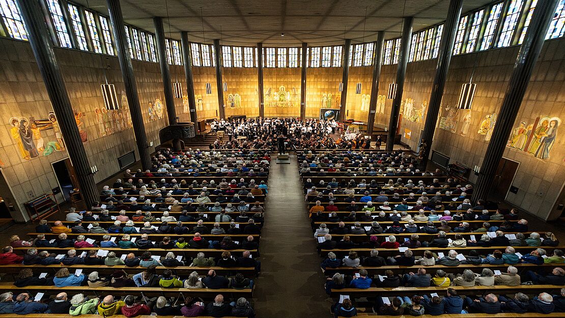 Unter der Gesamtleitung von Dieter Lange führten die rund 100 Musiker:innen und Sänger:innen diese schöne Komposition auf.