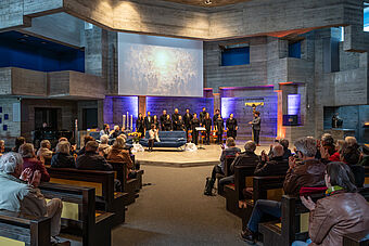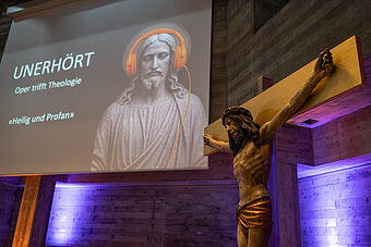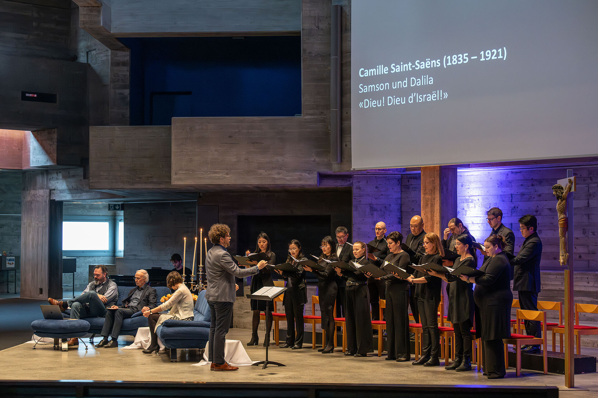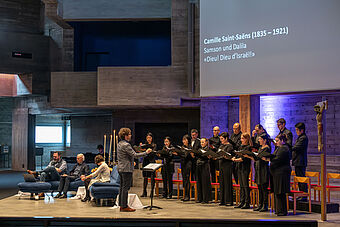 Im Zentrum standen zwei unterschiedliche, aber sich ergänzende Sprachen: die Sprache der Musik, verkörpert durch den Opernchor des Luzerner Theaters unter der Leitung von Manuel Bethe, und die Sprache der Theologie, vertreten durch Professor Peter Ramers und Stefan Knor. Moderiert wurde der Anlass durch die Dramaturgin Pia-Rabea Vornholt.