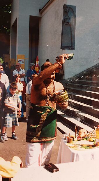 Spätestens zur Jahrtausendwende wurde breit spürbar, in welch interreligiösem Umfeld die Pfarrei St. Karl sich mittlerweile bewegt: Bei der Einsegnung der neuen St.-Karli-Brücke am 12. Mai 2001 wirkte neben der damaligen katholischen Co-Pfarreileiterin Antonia Probst und dem reformierten Pfarrer David Weiss vom Myconiushaus auch der Hindu-Priester Saseetharen Ramakrishna Sarma mit – unter den wohl staunenden Augen des Kirchenpatrons Karl Borromäus (Bild unten rechts).
