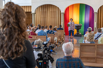 Gut besuchte Kirche beim Gottesdienst zur Pride Zentralschweiz 2022.