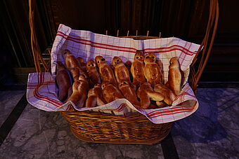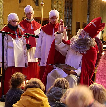 Ja, dem Samichlaus nah zu sein, ist schon ganz schön spannend und auch beglückend. Das hat sich wohl auch unsere Kirchenmaus Pauli gedacht, sie hat sich nämlich beim Samichlaus im Mantelsack versteckt. Gut, hat der Chlaus sie noch gefunden und uns Pauli wieder in unsere Obhut gegeben. Kindern eine Freude bereiten, das ist für den Samichlaus ein grosses Anliegen. Deshalb brachte er für alle Mädchen und Buben feine Gritibänze, Mandarinen und Willisauerringli mit.