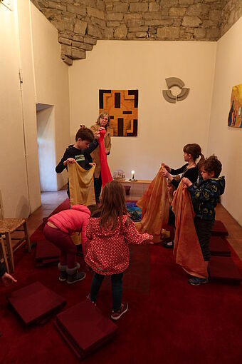 Während die Grossen in der Kirche den Gottesdienst feierten und der Predigt von Valentin Beck folgten, in der es sich um einen Esel drehte, waren die Kleinen in die Turmkapelle eingeladen, um der Geschichte vom Palmsonntag zu lauschen. Die Kinder durften erfahren, wie es sich anfühlt, wenn andere sich über sie freuen. Zum Vater unser waren gross und klein wieder zusammen.