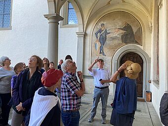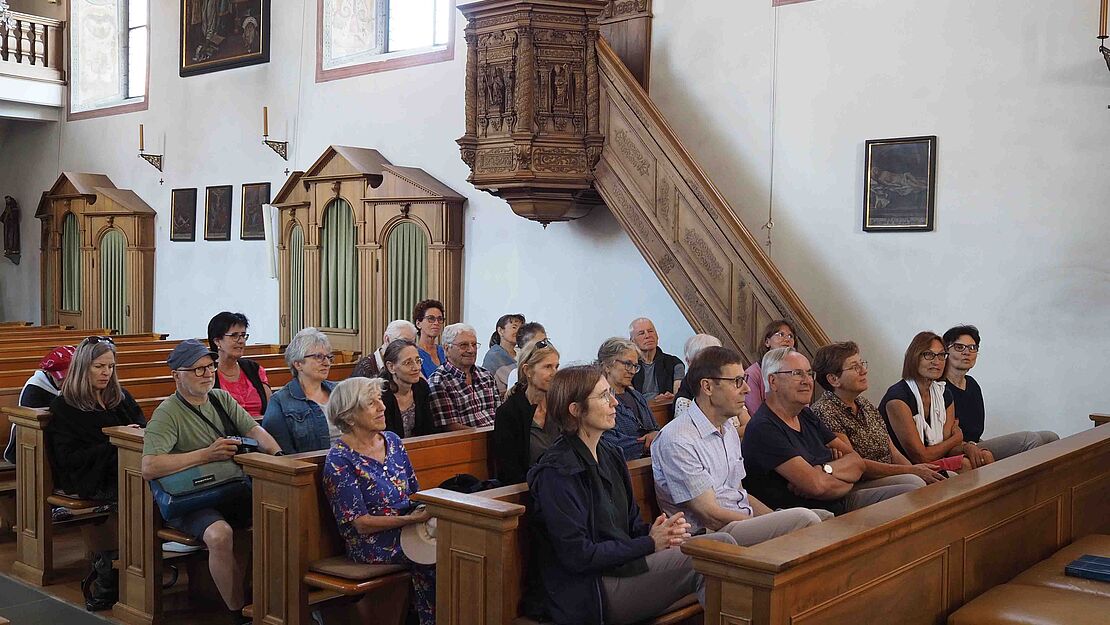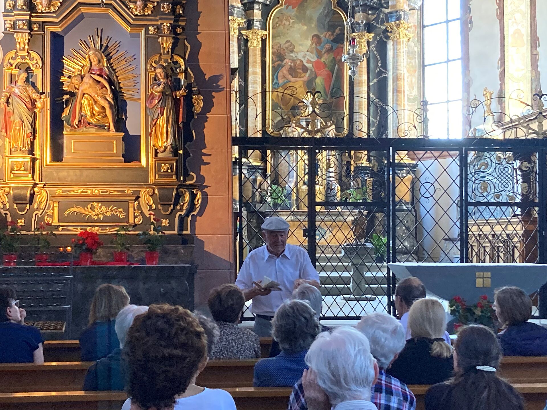 Bei fröhlicher Stimmung und in gespannter Erwartung bestiegen am Samstag, dem 25. Juni 25 Sängerinnen und Sänger des Franziskanerchors den Zug. Der erste Halt war Werthenstein, der bedeutendste Wallfahrtsort der Zentralschweiz während des 17. und 18. Jahrhunderts. Nach einer kleinen Stärkung mit «Kafi und Gipfeli» erwartete uns Alt-Regierungsrat Anton Schwingruber. Er führte uns mit beeindruckender Kenntnis und viel Leidenschaft durch die Geschichte des Ortes und des Klosters. Die Schilderungen reichten von der Gründungsgeschichte bis in unsere heutige Zeit und waren gespickt mit spannenden Details von Heil- und Wundertaten, von Goldwäschern und Zwetschgensteinen, besonderen Menschen und Bildern. Dass es sich beim Kloster Werthenstein noch dazu um ein Franziskanerkloster handelt, verstärkte die Zuneigung zu diesem wunderschönen Ort.
