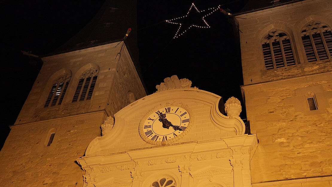 Weihnachtsstern zwischen den Türmen der Hofkirche