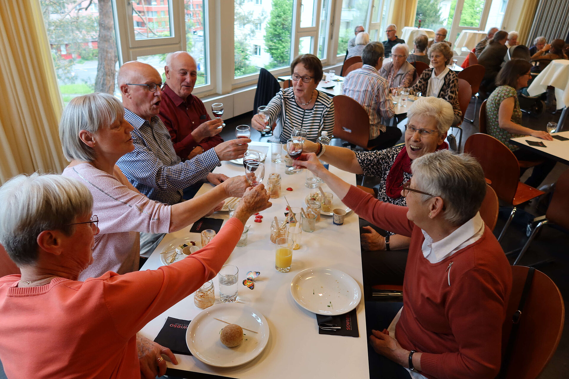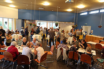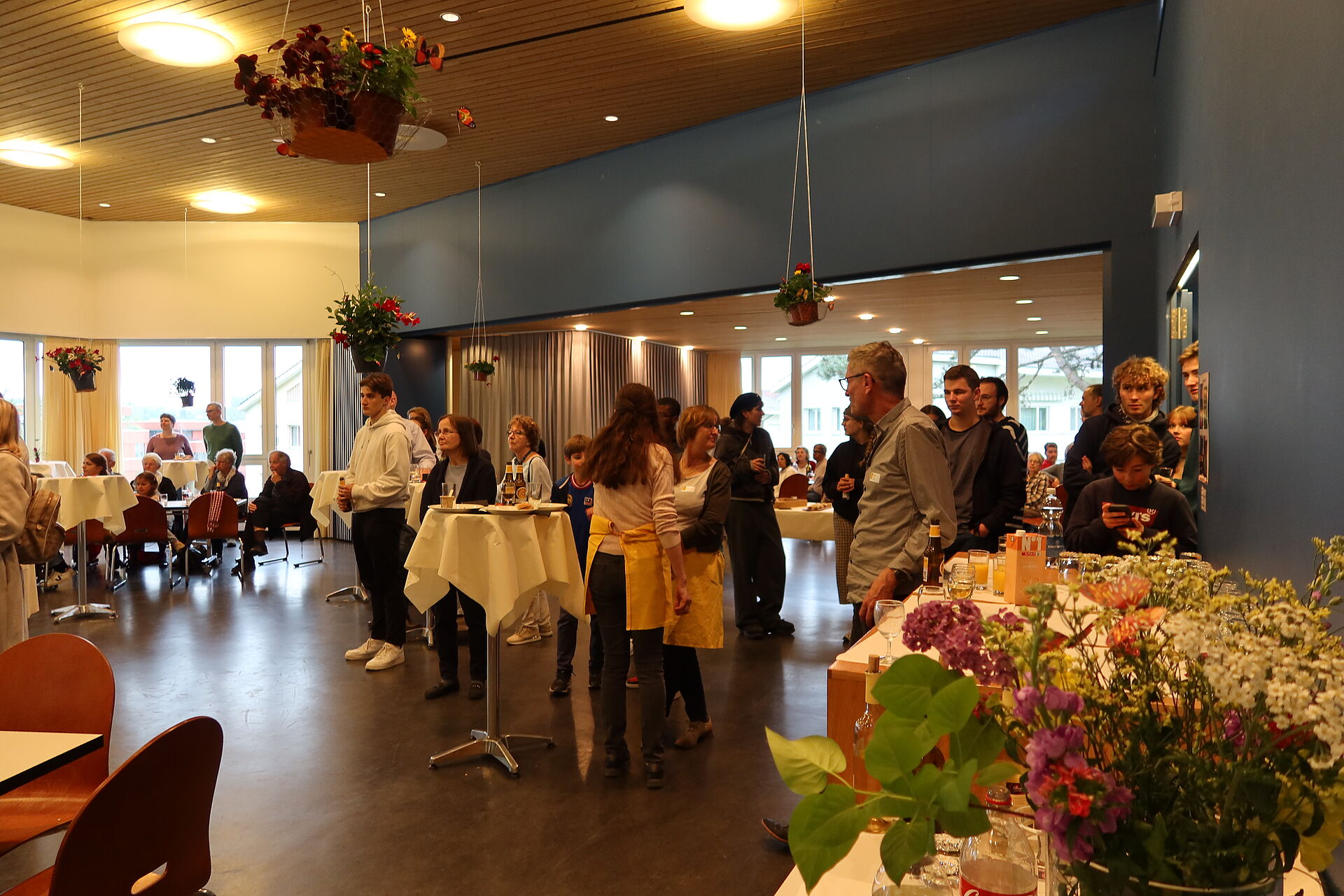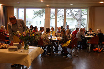 Der Einladung zum Apero riche leisteten viele Freiwilligen Folge. In schönem Blumenambiente genossen alle die feinen Häppchen und die Gespräche. Sehr passend wurde Goethe in der Dankesrede der beiden Pfarreileitenden Urs Brunner und Thomas Lang zitiert: