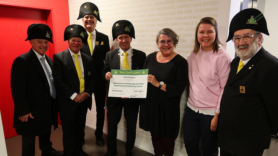 «Geselligkeit und Narretei – Wohltätigkeit sei mit dabei.» So zitierte der ehrenfeste Zunftmeister Marcel Manetsch das Motto der Wey-Zunft. Anlass war die Scheckübergabe zur Familienunterstützung im Bistro MaiHof. Den Scheck über 1000 Franken nahmen Beatrice Geuking und Nicole Häfliger-Kehrli vom Fachbereich Sozialberatung entgegen. Das Geld ist für den Antoniusfonds bestimmt. Die Spende ermöglicht Kindern und Jugendlichen aus finanzschwachen Familien ihre Lager-Teilnahme. Ein herzliches Dankeschön!