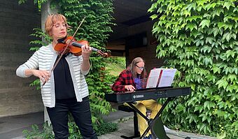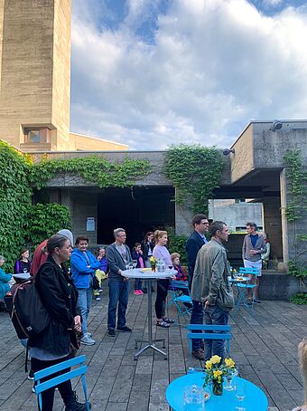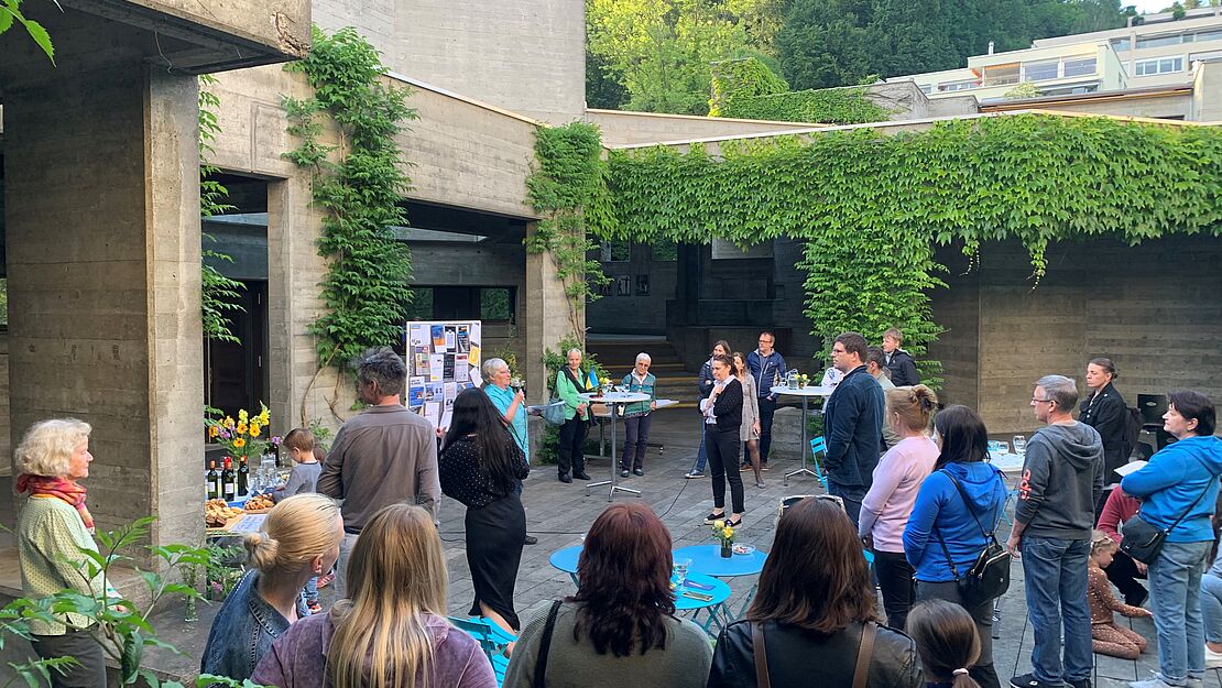 Zu Speis und Trank, Musik und Tanz, Infos und Austausch trafen sich UkrainerInnen und Einheimische aus dem Quartier Seeburg-Würzenbach-Büttenen bei schöner Sommerabendstimmung im Innenhof des Zentrums St. Johannes.