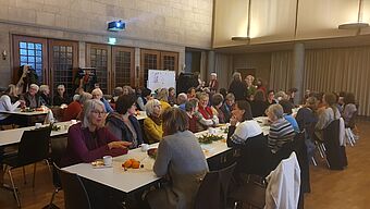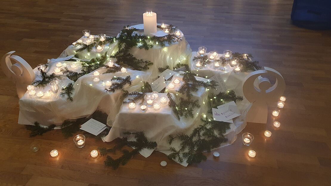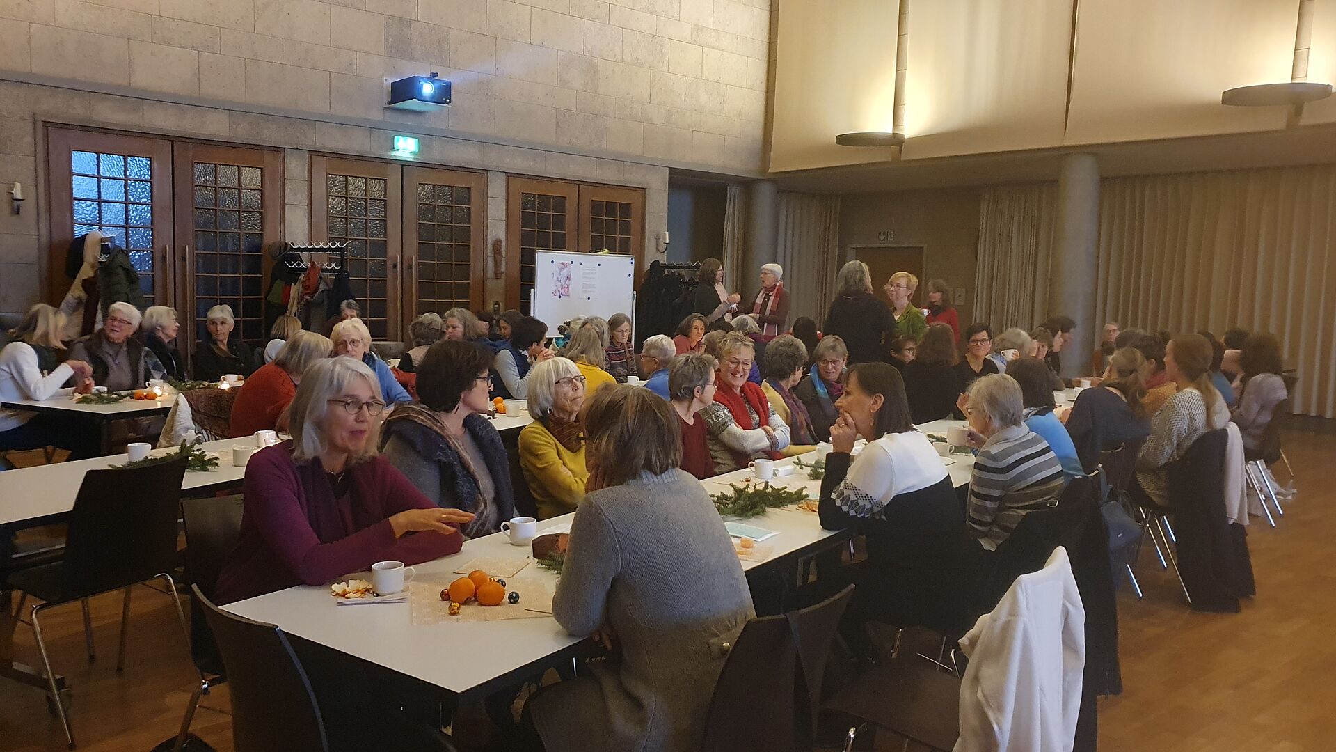 Ein Klangteppich aus Assoziationen, die die anwesenden Frauen zum Thema Engel hatten, von Harfenmusik begleitet, war einer der berührenden Momente der diesjährigen Frauen-Adventfeier. Fast 80 Frauen unterschiedlichen Alters gestalteten die Feier mit ihren Gedanken und ganz persönlichen Engelsvorstellungen mit. Melodische Harfenklänge und berührende weihnachtliche Lieder, gesungen vom Chor die LibELLEn unter der Leitung von Brigitte Kuster, rundeten die feierliche Stimmung ab.