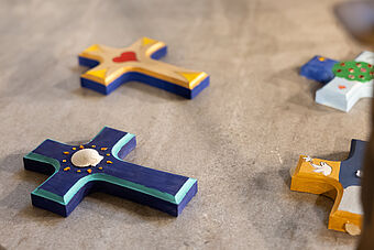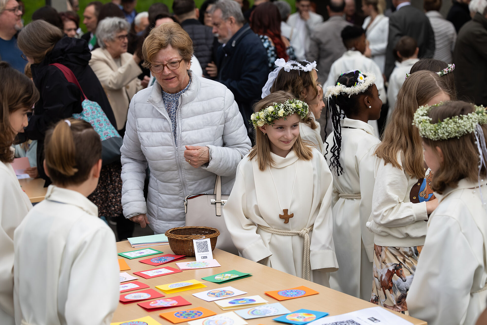 Nach dem Gottesdienst verkauften die Kinder selbstgestaltete Karten. Der Erlös geht an den Verein RocConakry, der sich für Waisenkinder in Guinea einsetzt. Damit sollen auch jene nicht vergessen werden, die vielleicht nicht jeden Tag einen reich gedeckten Tisch vorfinden.