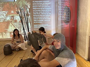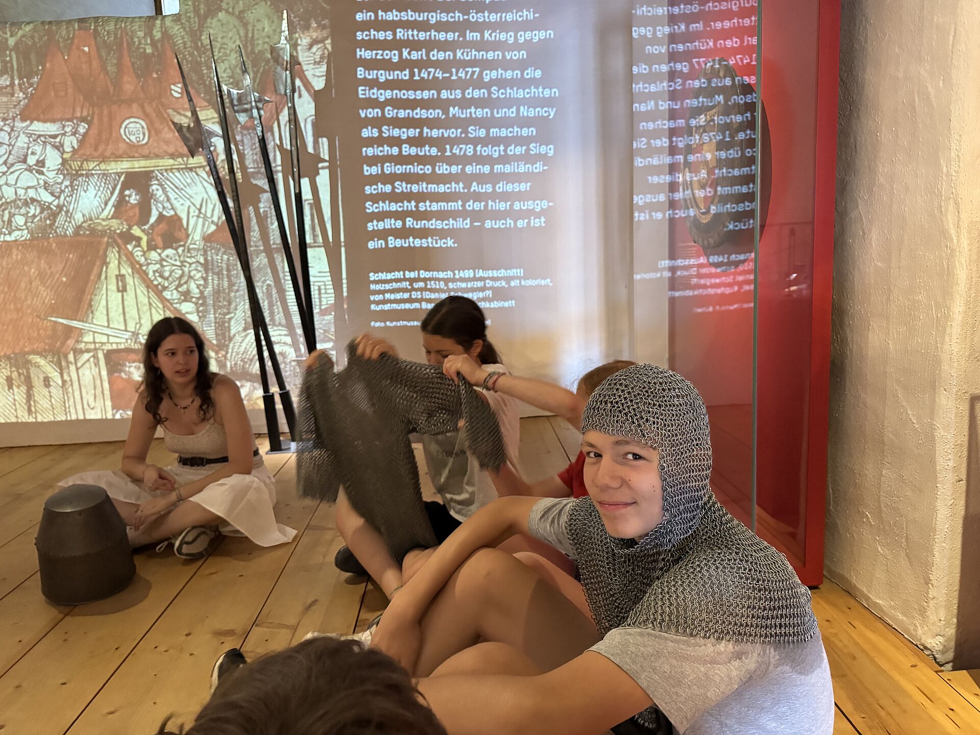 Unsere super Leitung im Zeitsprunge, Yvonne Fischer, liess uns anschliessend sogar in die privaten Räume der Burgfrau und des Burgherrn und ihrer Bediensteten schauen.