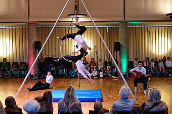 250 Zirkusfans liessen sich diese Chance nicht entgehen und genossen im Kirchensaal MaiHof den feinen Humor von Clownin Chi Chi, die beschwingten Lieder des Jugendchors und die magischen Momente mit den akrobatischen Einlagen von «Option Z» der Zirkusschule Tortelloni.